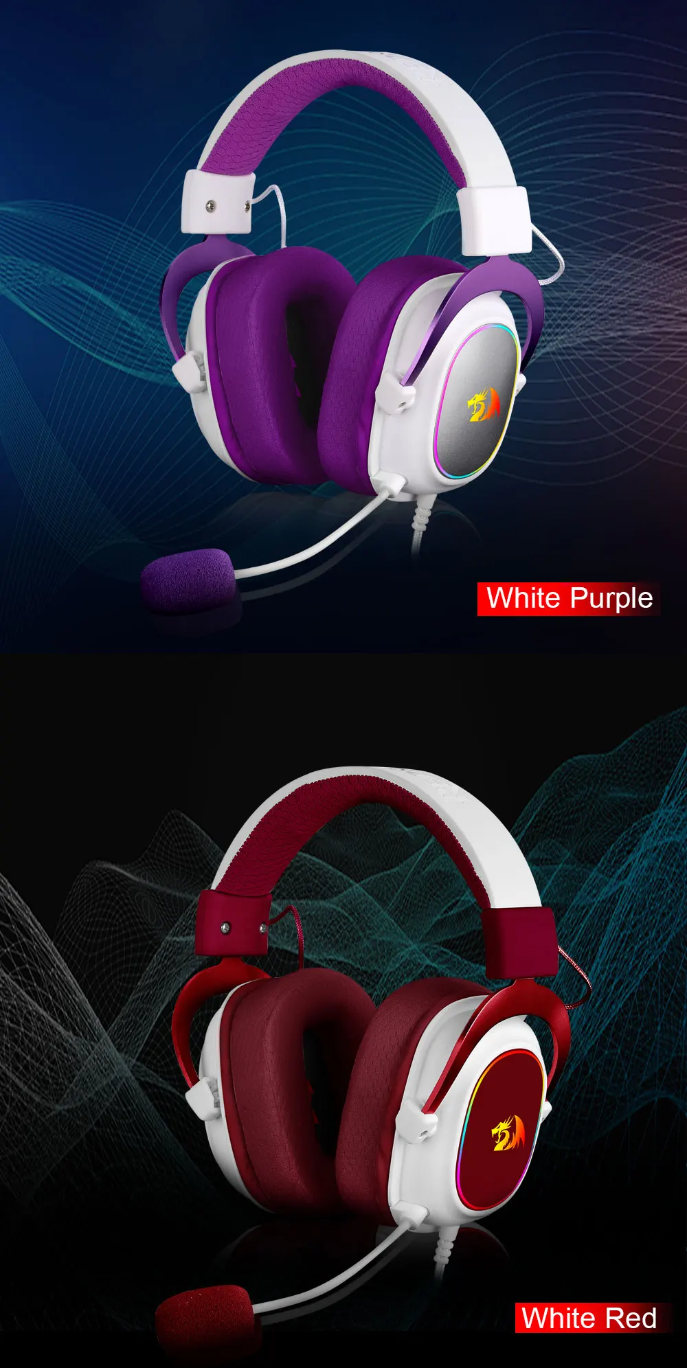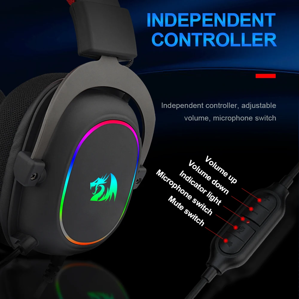 Игровые USB-наушники REDRAGON ZEUS X H510 RGB с шумоподавлением, 7,1 объемная Компьютерная гарнитура, наушники с микрофоном для ПК PS4