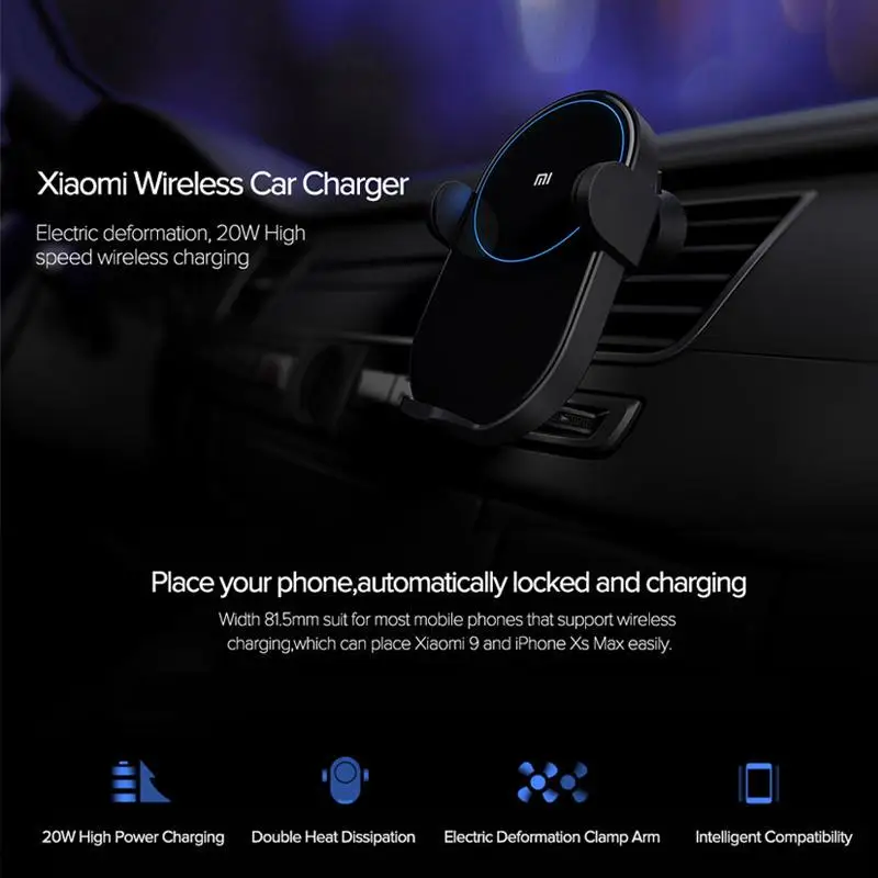 1. Это Беспроводное Автомобильное зарядное устройство Xiaomi 20 Вт, которое дает мобильному телефону Mi 9 максимальную скорость зарядки 20 Вт, и дает микс 2S и микс 3 a макс. скорость зарядки 10 Вт, дает другим мобильным телефонам Qi EPP скорость зарядки 5 Вт.