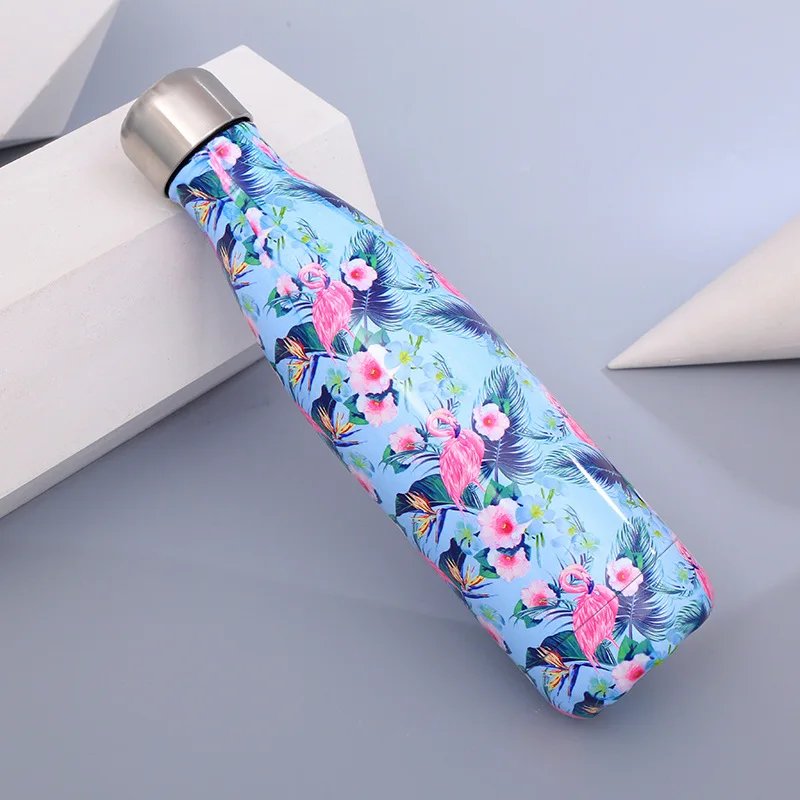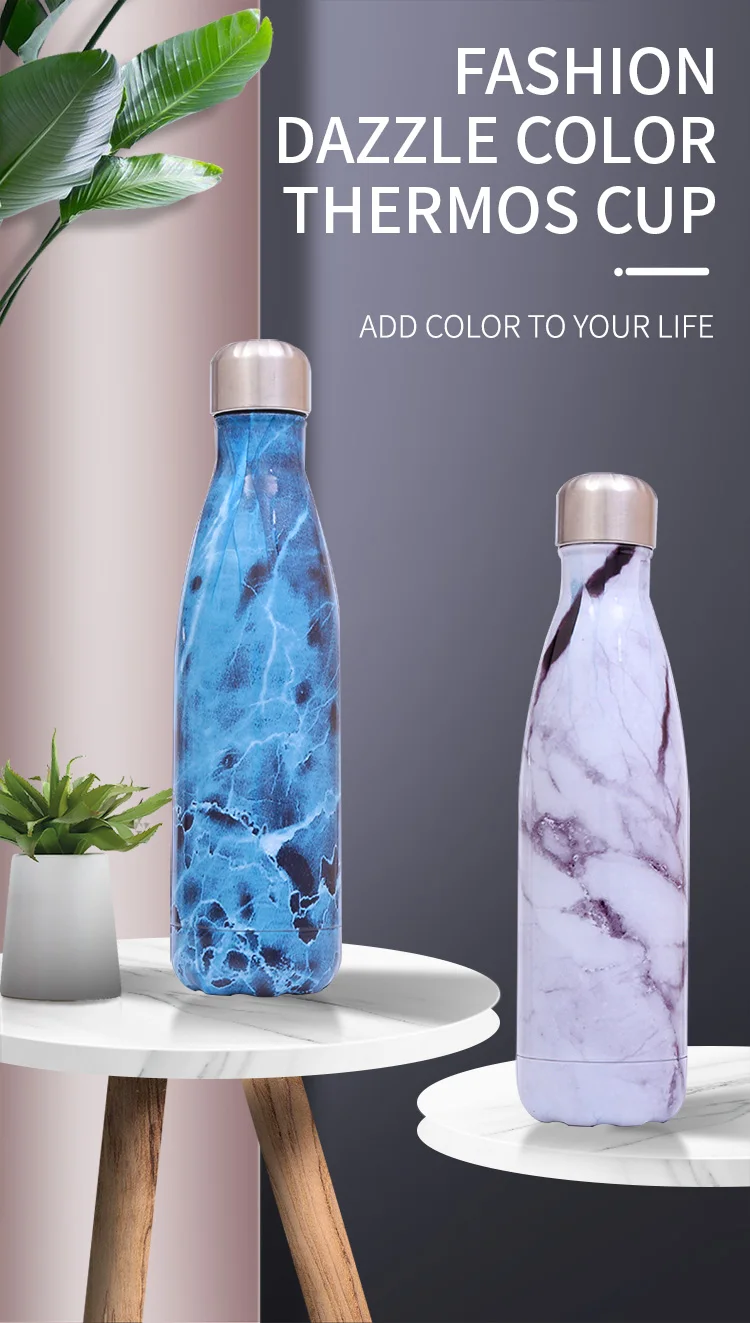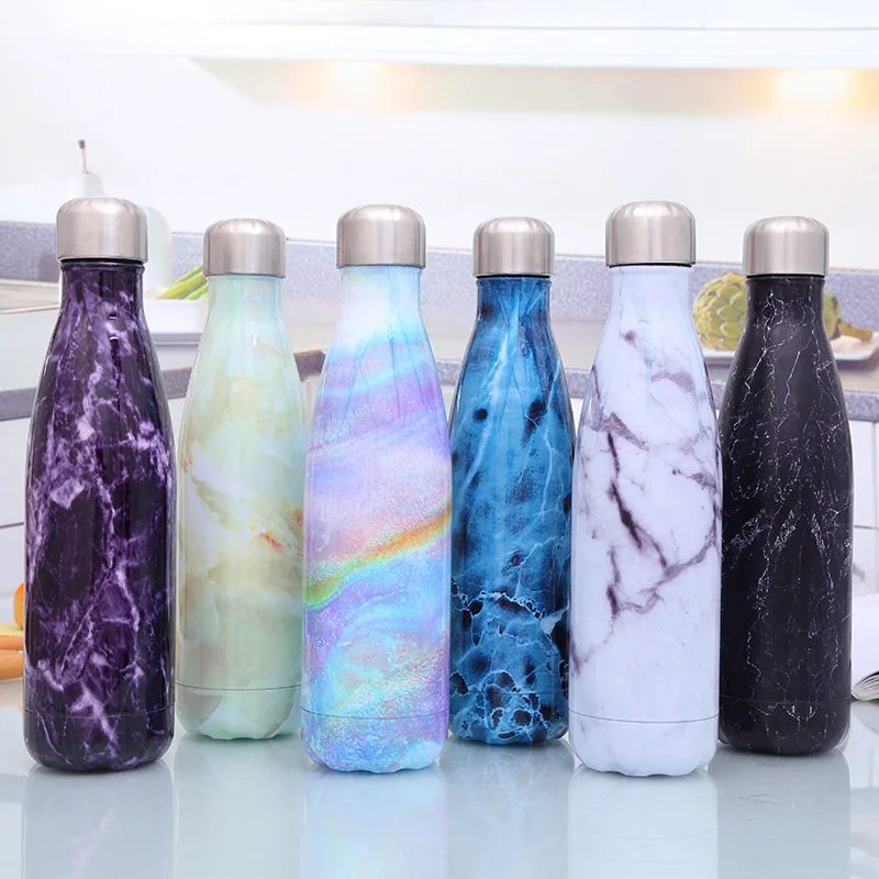 Изолированная бутылка для воды с цветами и мраморным рисунком, 17 унций, 500 мл, термофляжка из нержавеющей стали с двойными стенками для путешествий