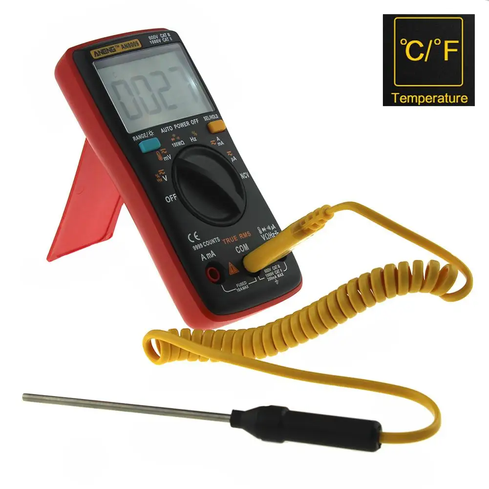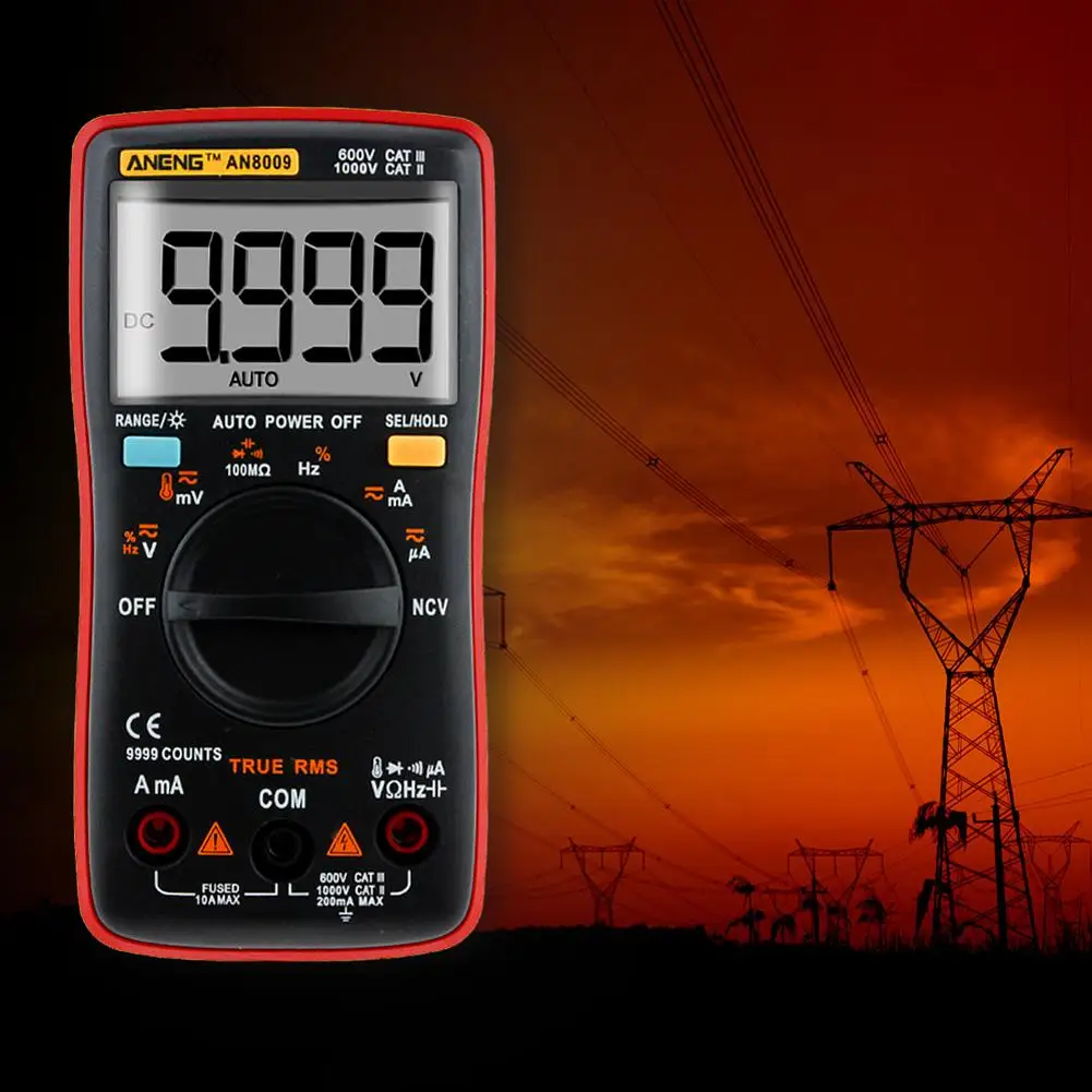 ANENG AN8009 True-RMS автоматический Диапазон Цифровой мультиметр NCV Омметр переменного/постоянного напряжения Амперметр измеритель тока Измерение температурыОписание:ANENG AN8009-один из первых 9999, автоматический цифровой мультиметр. Этот продукт работает от батареи с true-rms, светодиодный дисплей и подсветка. Модель цифрового мультиметра может измерять напряжение переменного/постоянного тока, постоянный ток, сопротивление, непрерывность, диоды, транзисторы hFE и так далее. Портативный и простой в использовании. Он может хорошо обслуживать в обслуживании авто, электротехники и теачиг лаборатории, и т. Д.Особенности:1. С большим обзором ЖК-дисплея с подсветкой, дата может быть четко показана.2. Подсветка позволяет легко читать дисплей в темном состоянии.3. Маленький размер, портативный с мешком, вы можете взять его в любом месте, где вам это нужно.4. Компактный эргономичный дизайн, выглядит очень красиво.5. Использование одной рукой идеальный выбор для измерения.6. Позволяет проводить различные электрические испытания, включая сопротивление, напряжение постоянного/переменного тока и тесты тока с простым переключателем.7. Легко работать, автоматическое определение точного измерения с самокалибровочным чипом, чтобы убедиться в точности и стабильности.Характеристики:Название бренда: ANENG