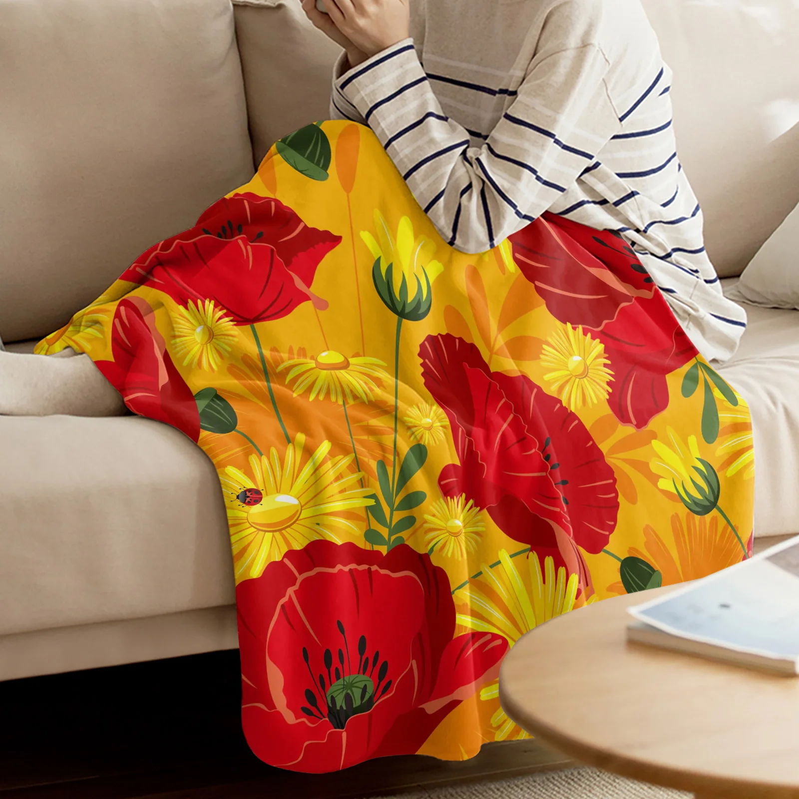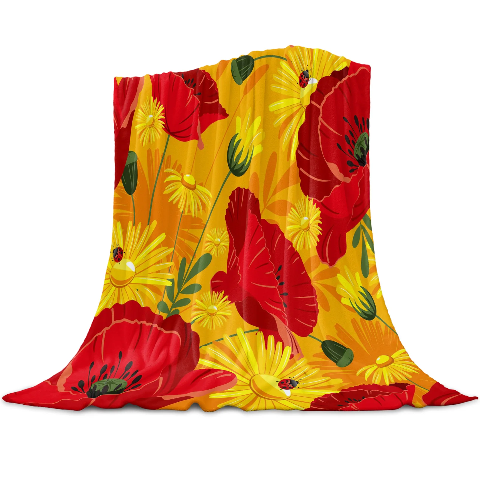 Флисовое одеяло с красными цветами, маком, маргариткой, кораллом, покрывало для кровати, Фланелевое покрывало для дивана, маленькое одеяло для детей, домашний текстиль