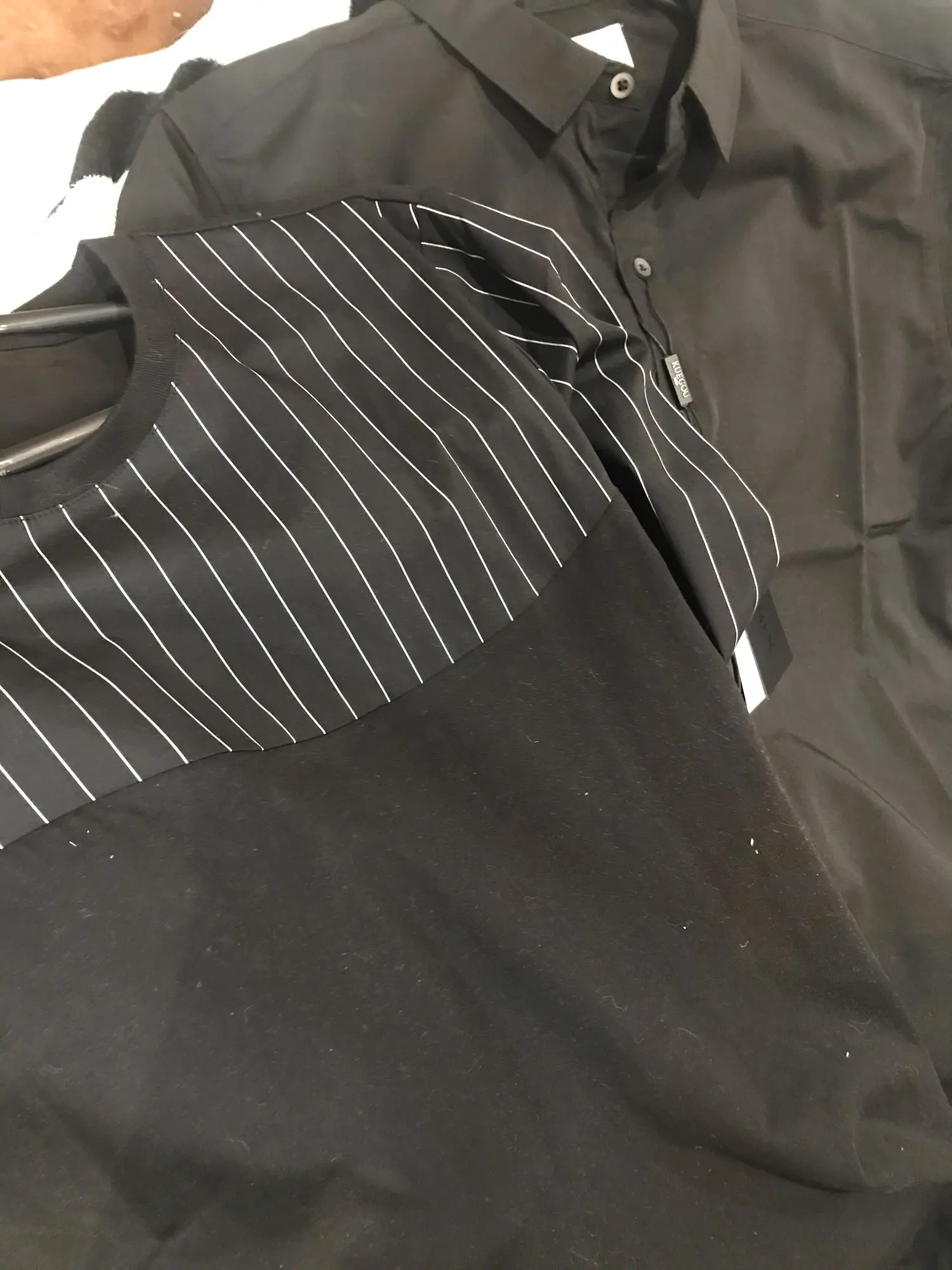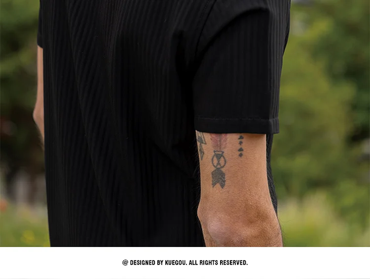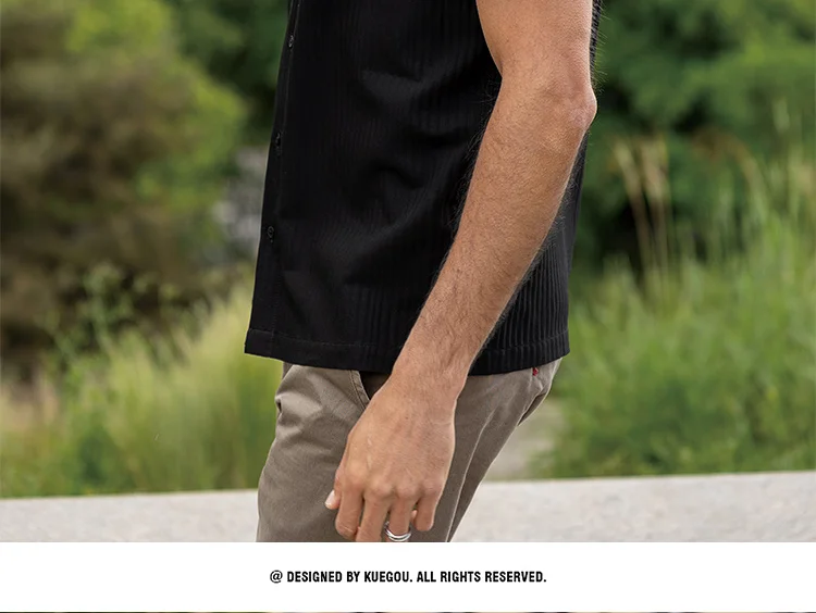 KUEGOU хлопчатобумажная одежда мужские рубашки стильное джинсовое платье с коротким рукавом в стиле кэжуал рубашка в полоску летняя футболка высокого качества Топ Плюс Размеры BC-20532