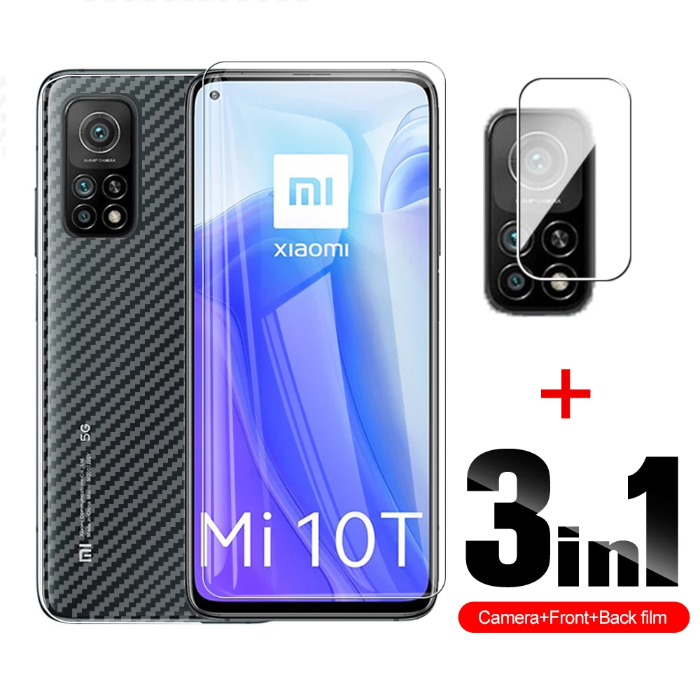 3 в 1, волоконная задняя крышка + закаленное стекло для защиты экрана Xiaomi 10 T Pro 10 T Lite, стекло для объектива камеры xaomi 10 t 10tlite