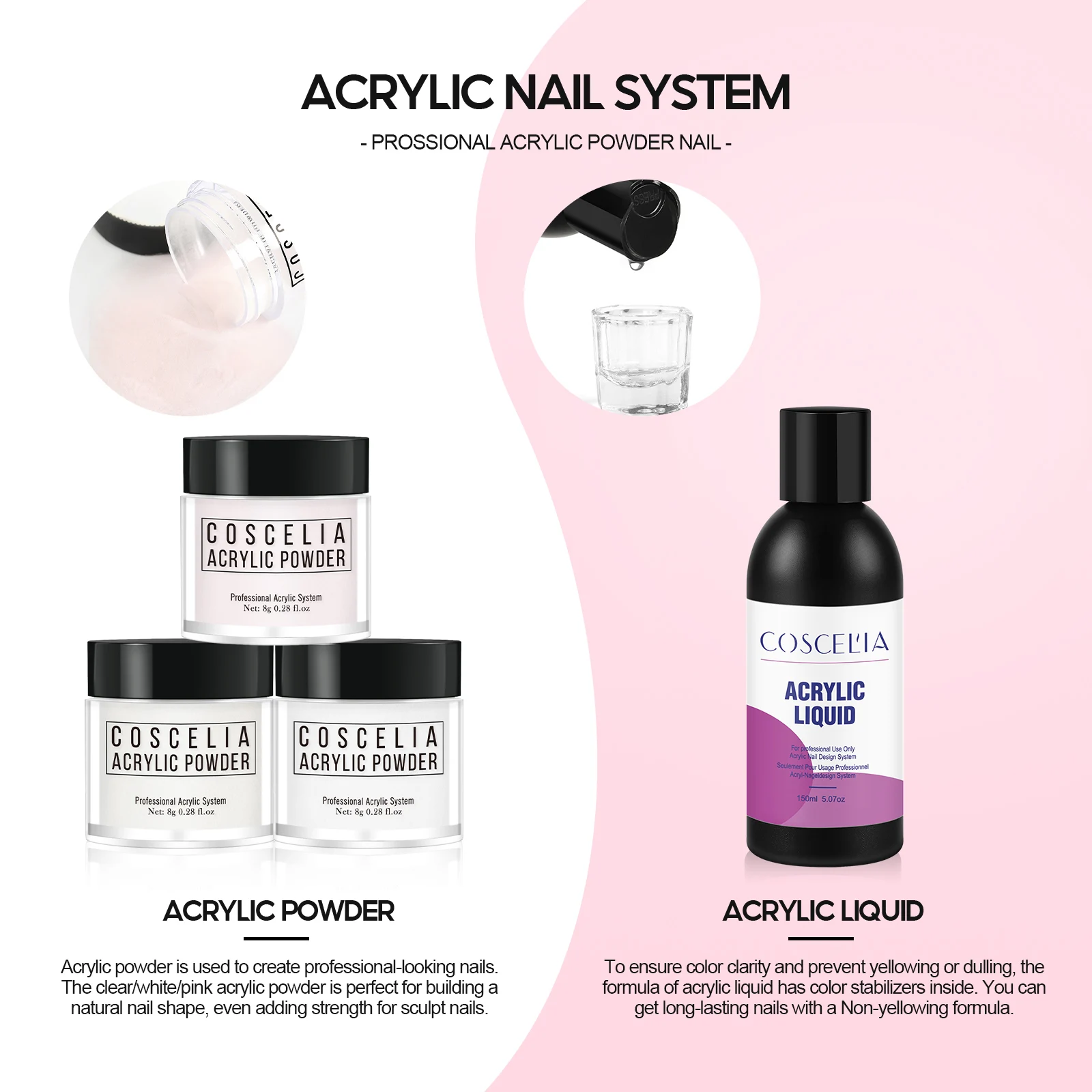 Набор акриловых маникюрных инструментов COSCELIA, машинка для аппаратного маникюра с лампой, инструменты для ногтей, кисть для акриловой пудры и жидкости, все для маникюра