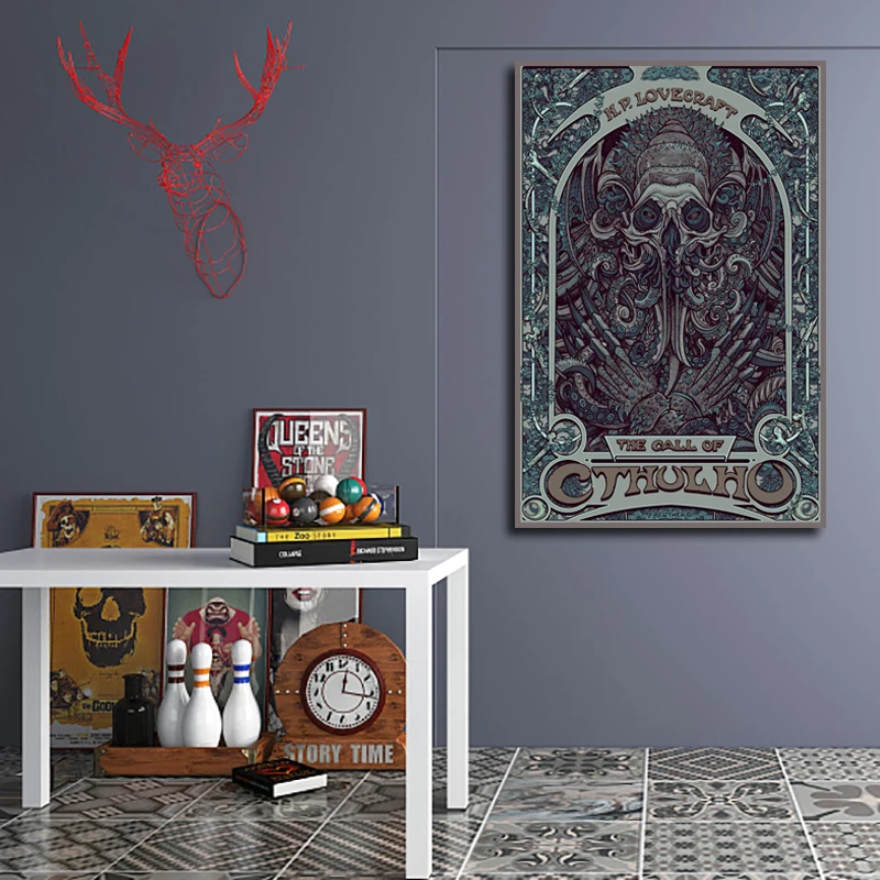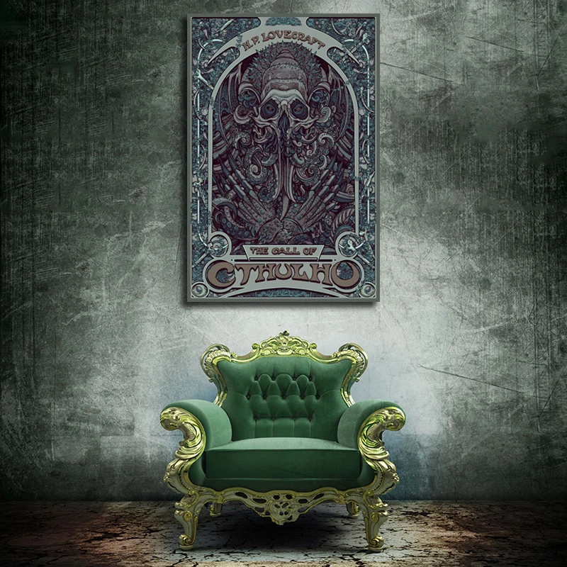 Тканевый плакат Cthulhu, цельный плакат Lovecraft Cthulhu, художественная роспись на холсте, Настенная картина для декора гостиной
