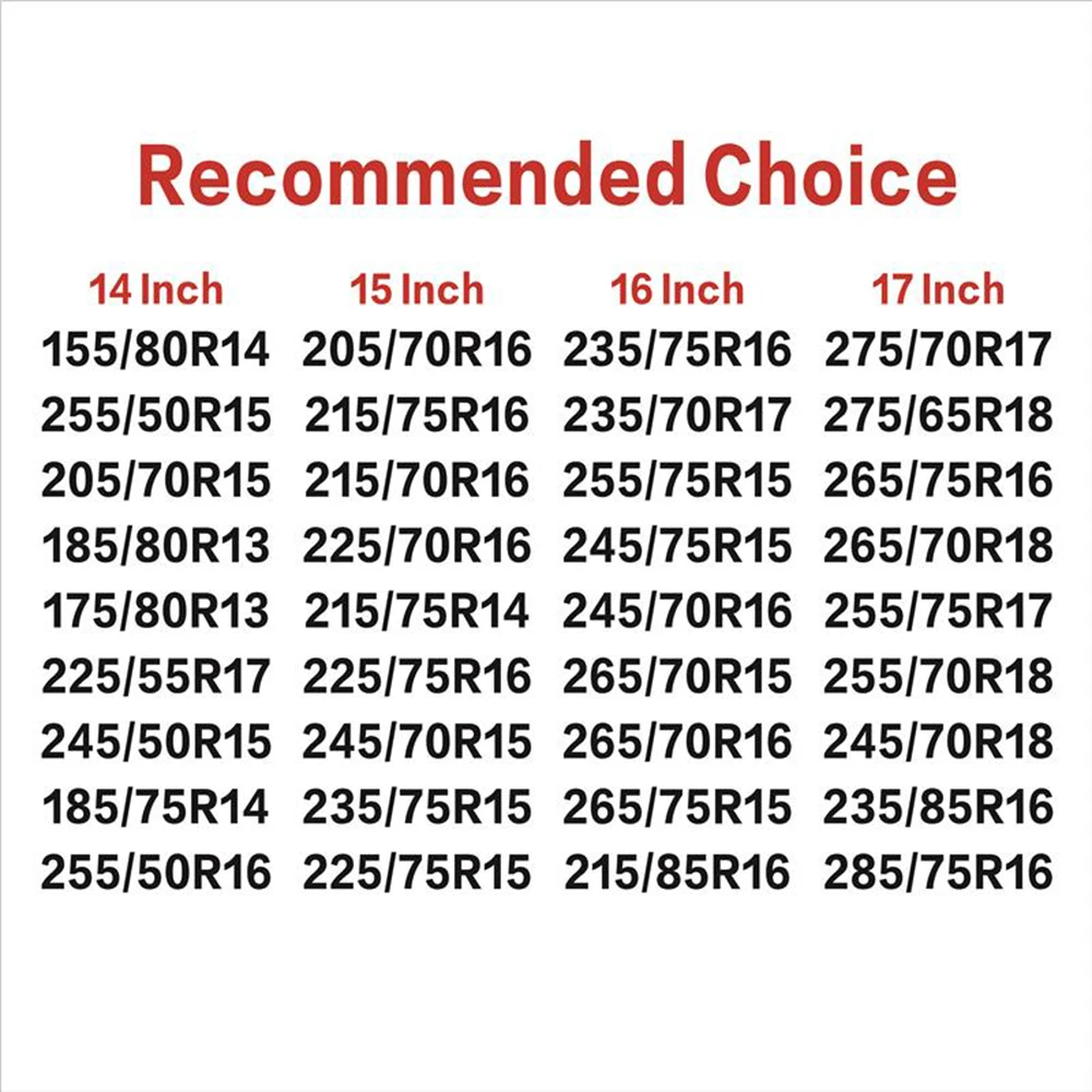 Подходят для этих моделей шин:155/80R14 255/50R15 205/70R15165/80R13 145/80R16 205/75R14165/80R14 155/80R14 205/75R15175/80R13 165/80R13 215/65R16185/80R13 175/80R13 225/55R17190/65R15 185/70R14 235/60R16195/70R13 185/80R13 255/60R15205/55R15 190/65R15 215/70R15205/60R15 205/55R16 255/60R14215/50R15 205/75R14 215/70R15215/60R14 205/75R15 205/65R16245/50R15 185/75R14 255/50R16185/75R14 185/75R15 195/75R15205/60R14 195/75R14И так далее