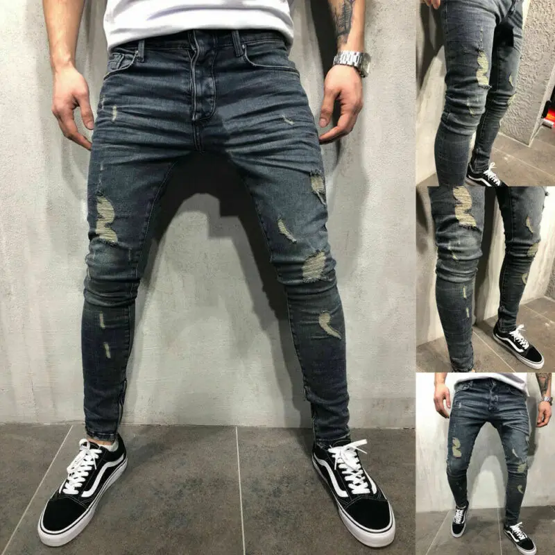 S-4XL мальчиков мужские рваные джинсы Эластичные Обтягивающие джинс...