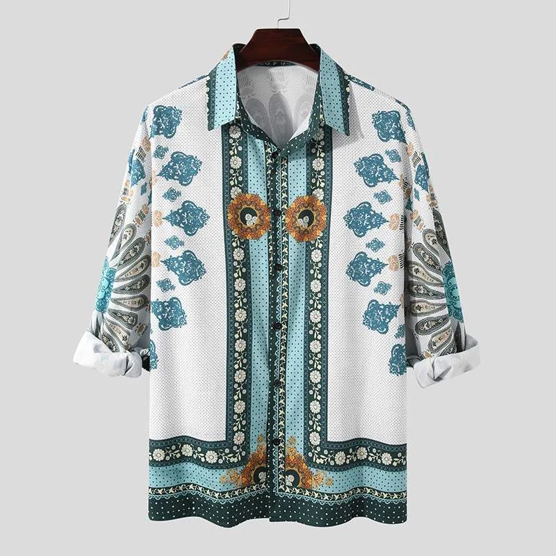 Рубашка мужская с длинным рукавом, модная блузка в английском стиле, повседневная с гавайским цветочным принтом, на пуговицах, с отложным воротником