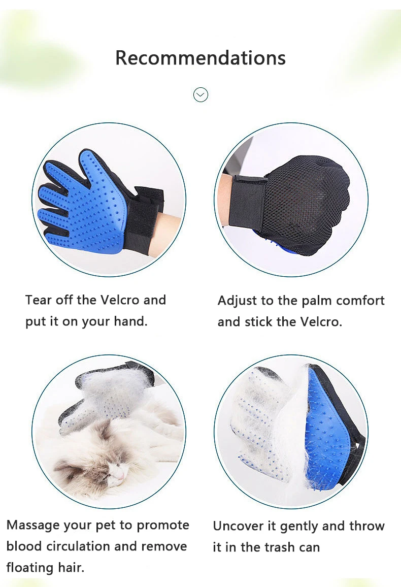 Эти перчатки для удаления пятью пальцами специализируются на очистке и массаже кошек, собак, лошадей и других пород. Вашим питомцам обязательно понравятся эти перчатки, потому что большинство животных предпочитают мягко касаться руками, а не использовать другие продукты для ухода или массажа.