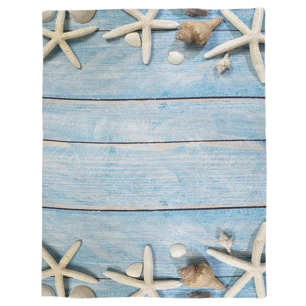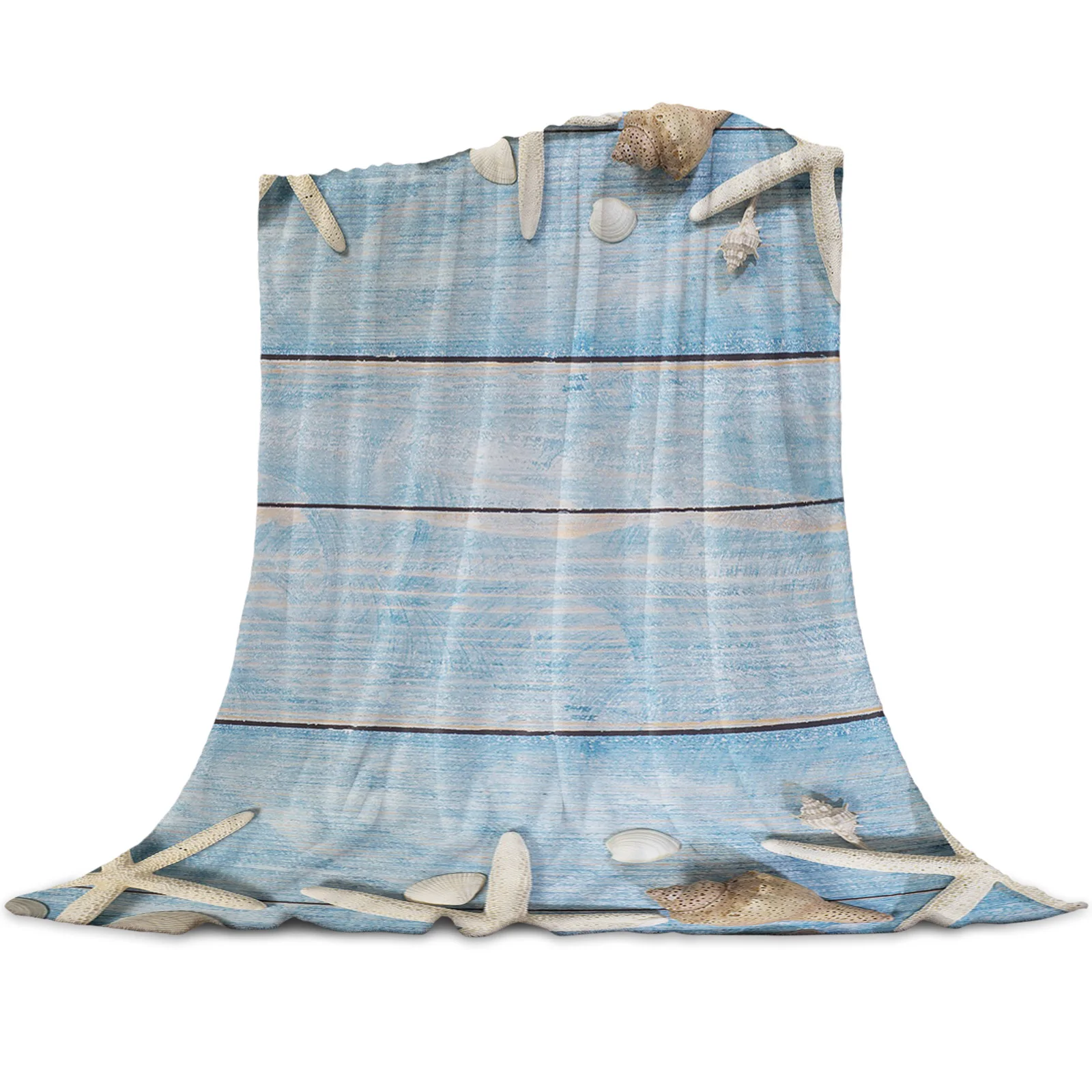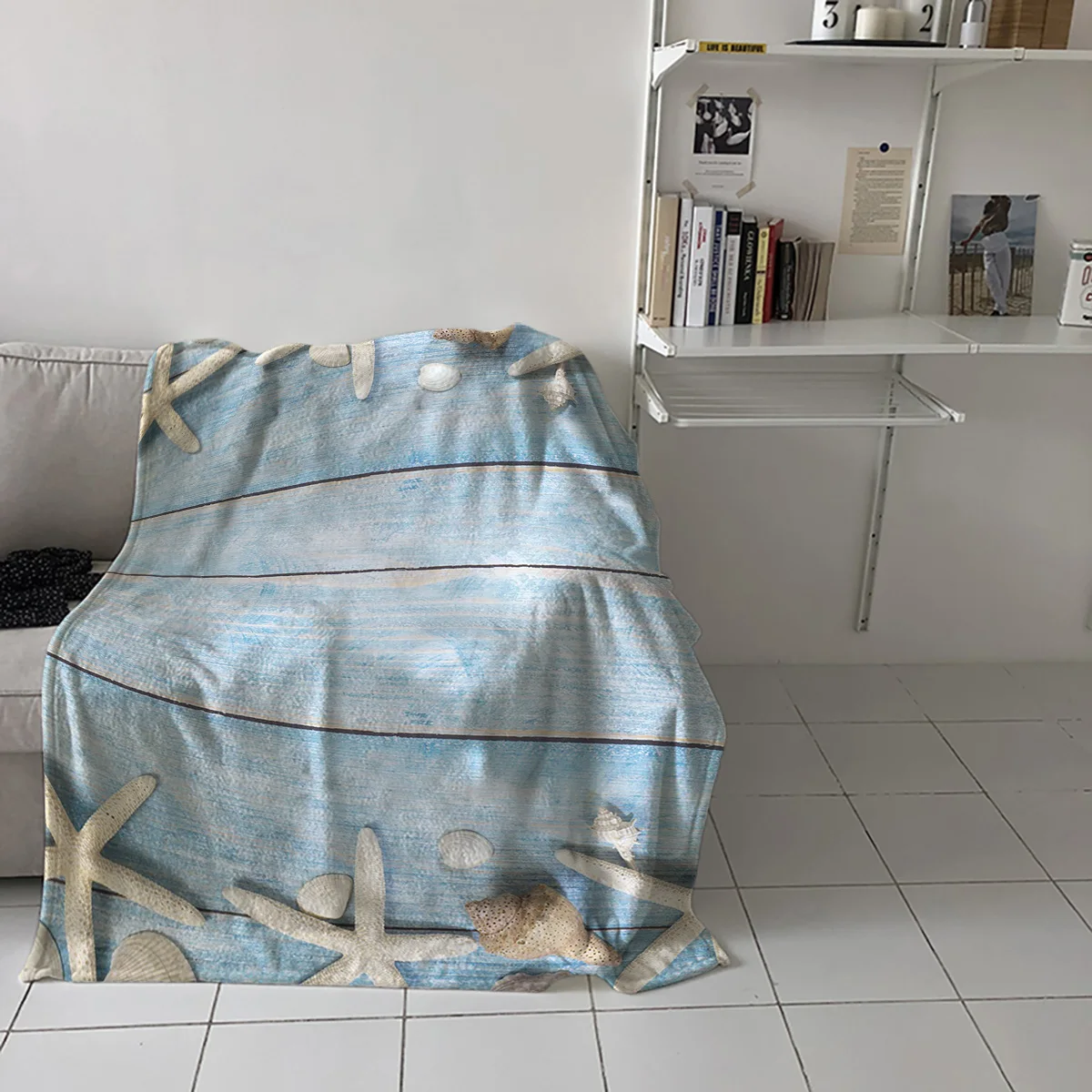 Пляжное Флисовое одеяло с синей деревянной текстурой и морскими звездами, мягкие теплые дорожные одеяла, зимние одеяла для взрослых и детей