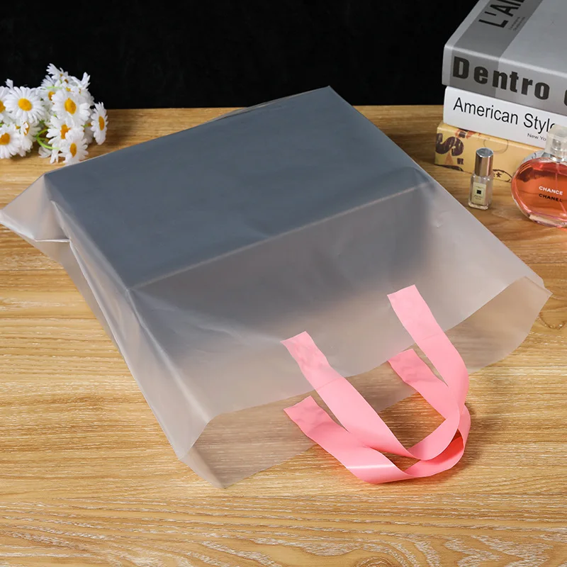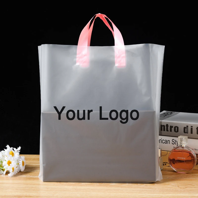 10 шт., Пользовательский логотип прозрачные матовые поверхностные сумки для делового подарка, упаковка для одежды, сумки для покупок с круглой ручкой, персонализированные сумки