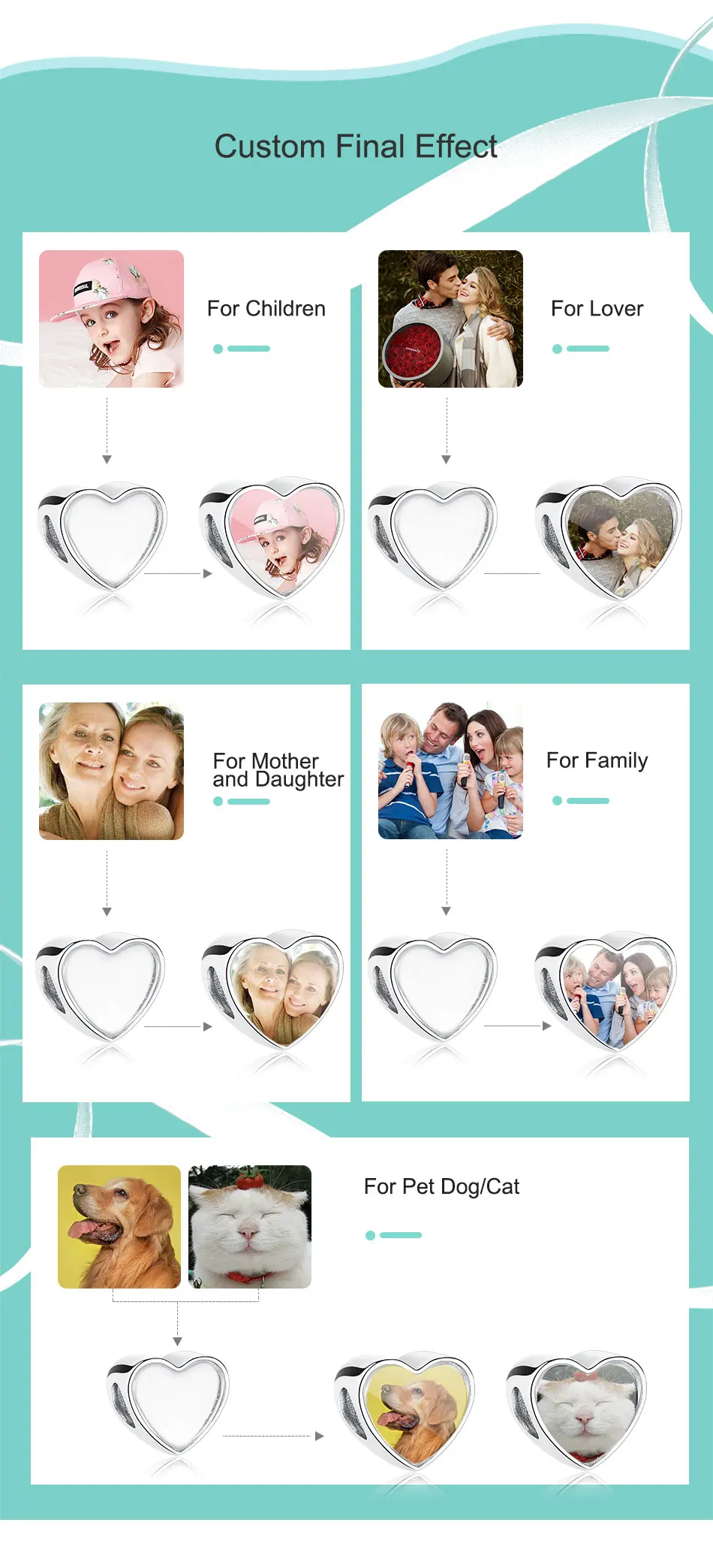 1. Обслуживание: Мы предоставляем бесплатные пользовательские фото-услуги.2. Метод: вы можете просто отправить фотографию, которую вы хотите, непосредственно в сообщении.3. Время доставки: заказное очарование должно быть настроено и нужно около 5-10 дней, чтобы произвести, надеюсь, что мой ценный клиент может понять. Пожалуйста, не волнуйтесь, когда очарование закончится, мы отправим быстрее.4. Если у вас есть какие-либо вопросы, пожалуйста, свяжитесь с нами, мы будем рады решить проблемы для вас.