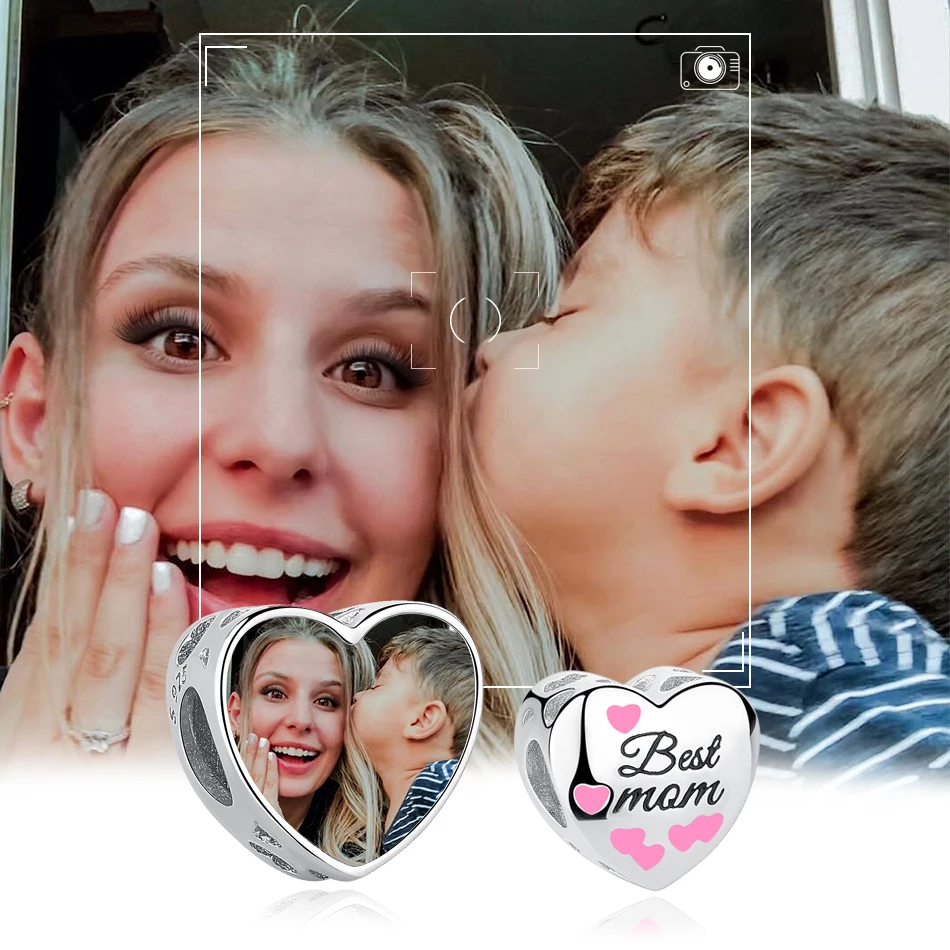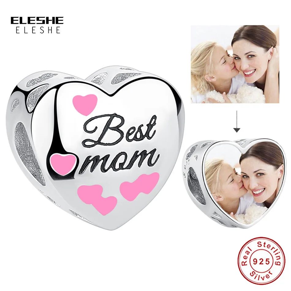 ELESHE 100% 925 серебро сердце лучшего мамы из бисера персонализированные пользовательские фото Подвески подходят к оригинальному браслету, "сделай сам" для изготовления ювелирных изделий