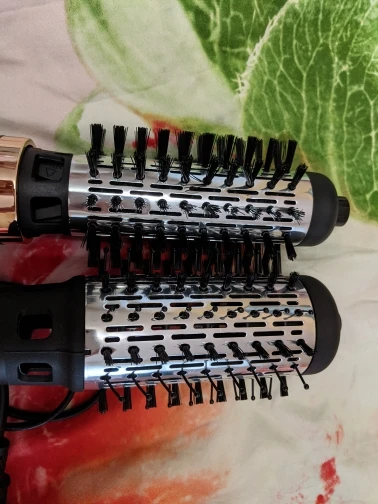 Посылка получена на почте на 37 день, долгая доставка. Коробка в которой находился фен была чуть примята, фен в порядке целый. Заказывал фен маме, ей понравился, покупкой довольна, цвет красивый: тёмно - зелёный, щетинки все ровные. Вращение щёток в обе стороны, надо приловчиться правильно нажимать кнопки, чтобы не запутывать волосы. Для короткой стрижки, то что надо. Шумит, как любой обычный фен. Рекомендуем к покупке женщинам с короткой стрижкой (меньшая насадка) и средней стрижкой (большая насадка) для придания объёма.
