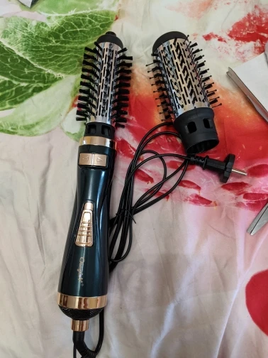 Коробка пришла очень помятая, как ещё фен остался в рабочем состоянии-загадка... Продавцу нужно лучше упаковывать товар. Что по поводу самого фена, в принципе хороший. Имеет в комплекте насадку большего диаметра, три режима подачи воздуха-холодный, и две скорости подачи горячего воздуха. Насадка крутится в разные стороны. НО, нужно к нему приспособится, он зажевывает волосы,не прокручивает их, затягивает, как на бигуди. Но если приспособится, то вполне можно использовать для укладки волос.
