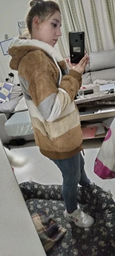 Женская куртка с длинным рукавом, новинка 2021, свободная плюшевая многоцветная куртка с капюшоном, осенняя одежда для женщин, куртка для женщин