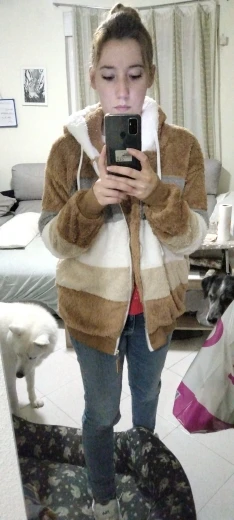 Красивая, размеру соответствует, пришла быстро. подклада и синтепона нет, то есть это очень тёплая кофта.