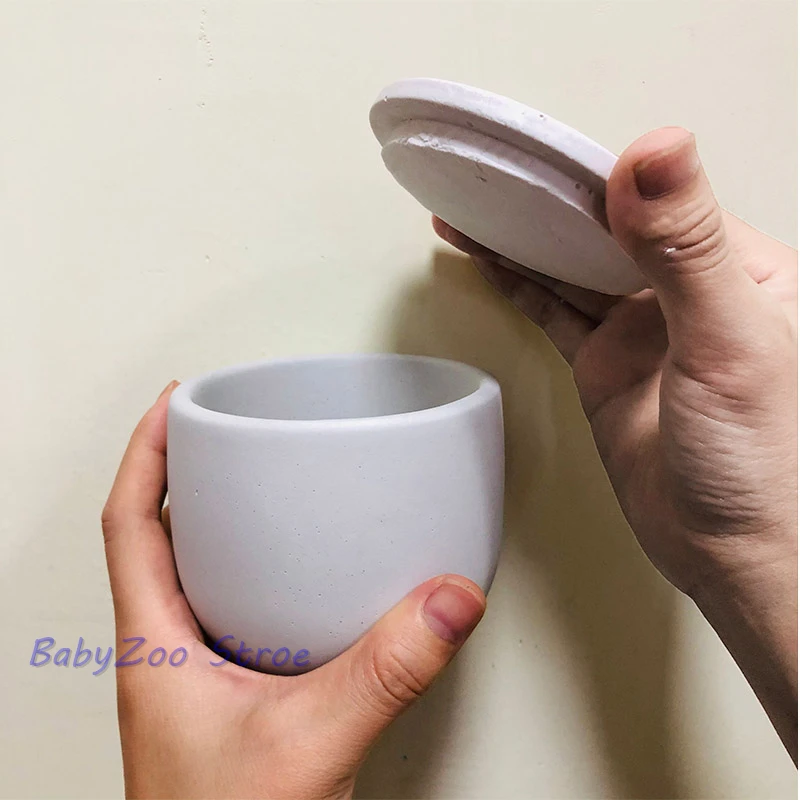 Круглая банка для свечей с крышкой, бетонная силиконовая форма, кон...