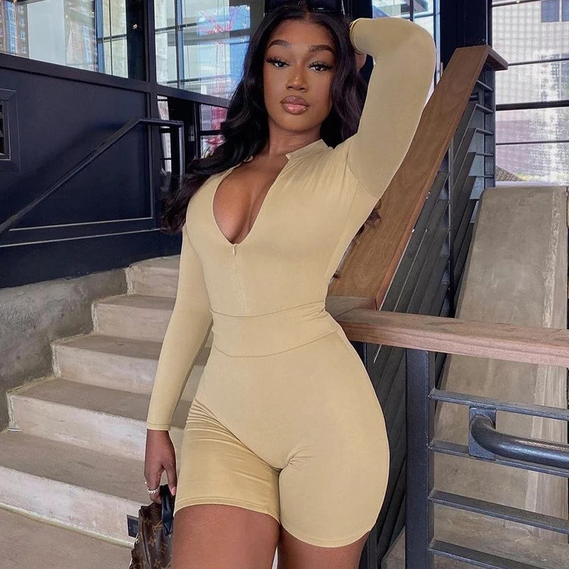 Simenual Повседневный боди с длинными рукавами и байкерские шорты комплект из 2 предметов спортивный костюм на молнии с ложным воротником, комплект одежды для дома, Новинка