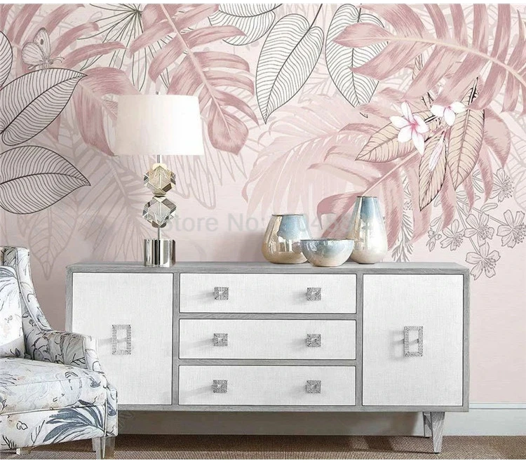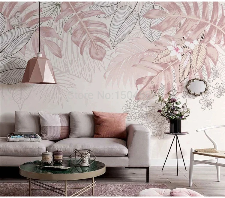 Фото обои скандинавском стиле Ins с рисунками розового цвета, ручная работа; Тропические растения и листья Крытый Гостиная фон настенная Papel де Parede 3D