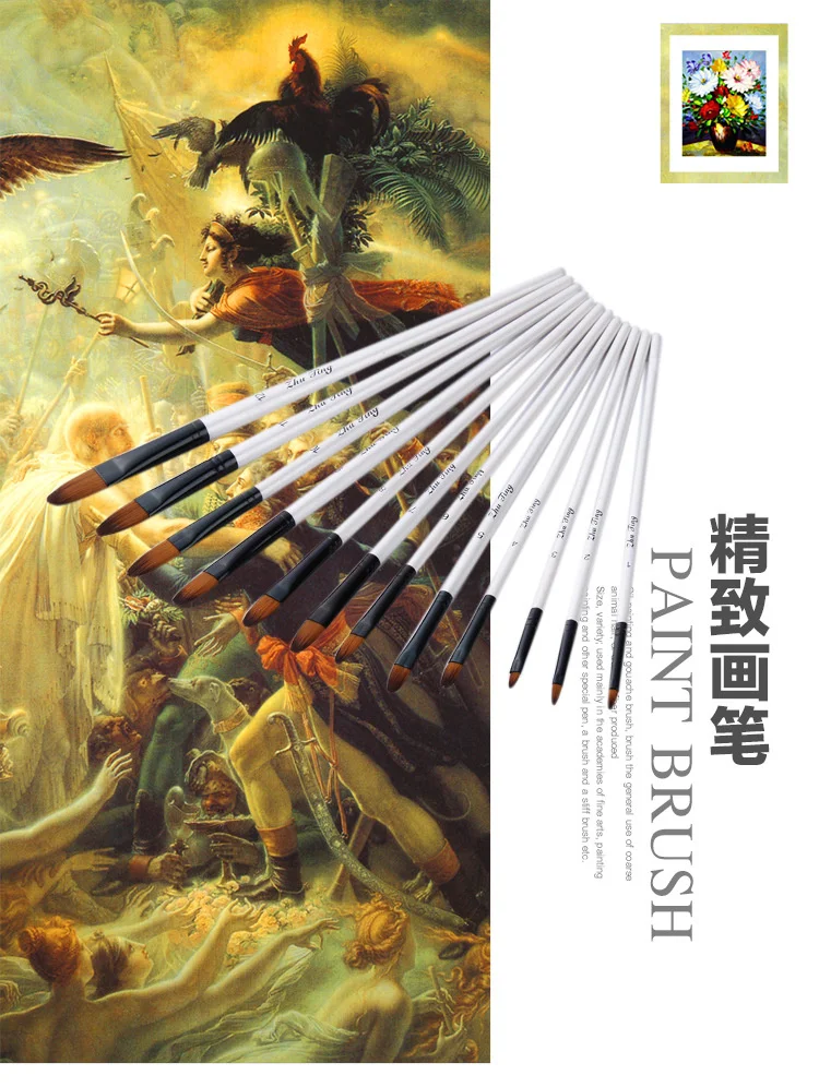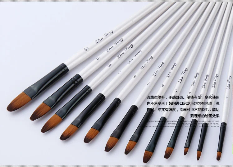 12 шт.упак. нейлон белый шест деревянная щетка с ручками, акварельные кисточки кисть для рисования, ручка набор сделай сам масляная Акриловая картина кисти товары для рукоделия