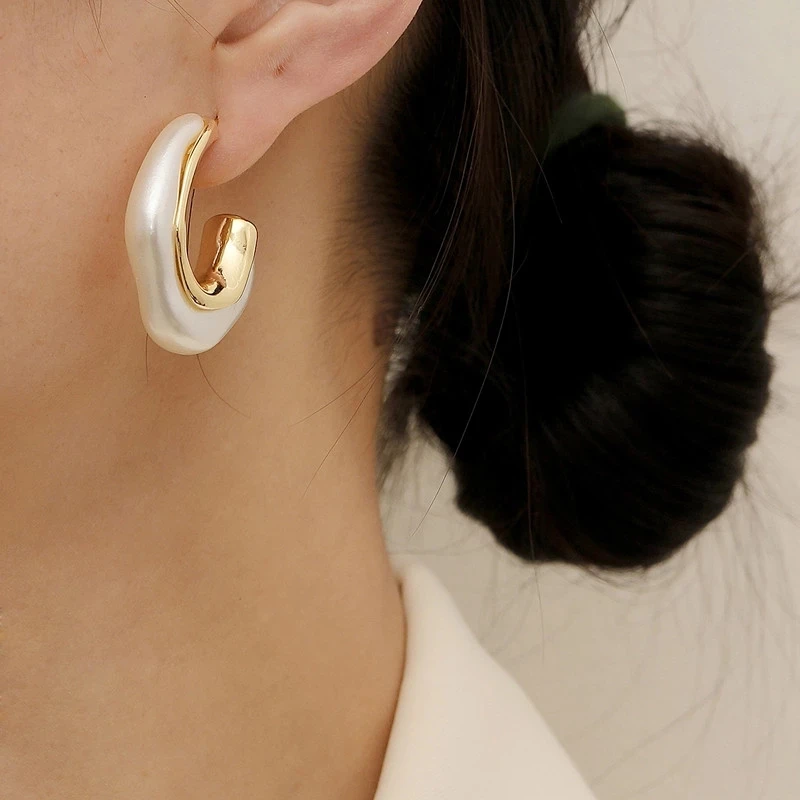 Серьги-кольца женские, прозрачные, U-образные, из золотистого металла, 2021
