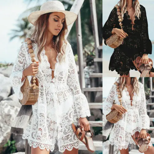 2020 Новое пляжное платье, сексуальные женские кружевные туники для...