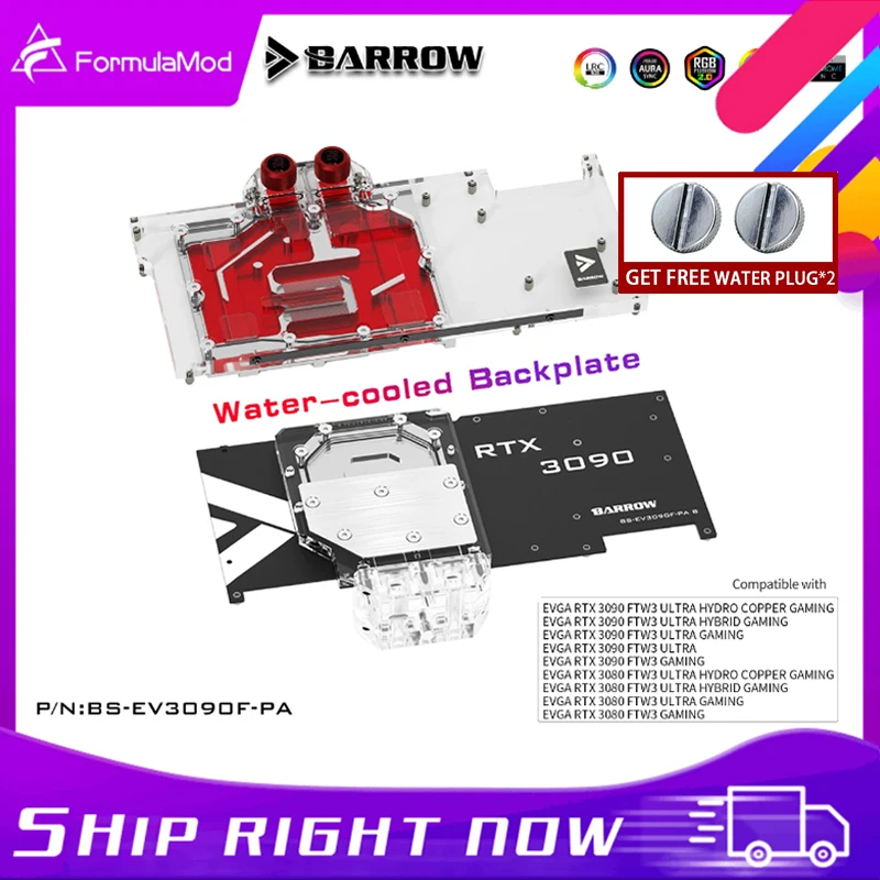 Барроу 3080 GPU Блок Водяного Охлаждения объединительная панель для EVGA RTX3090 3080 FTW3 ультра, для активного отдыха с водяным охлаждением навершие, BS-EV3090F-PA B