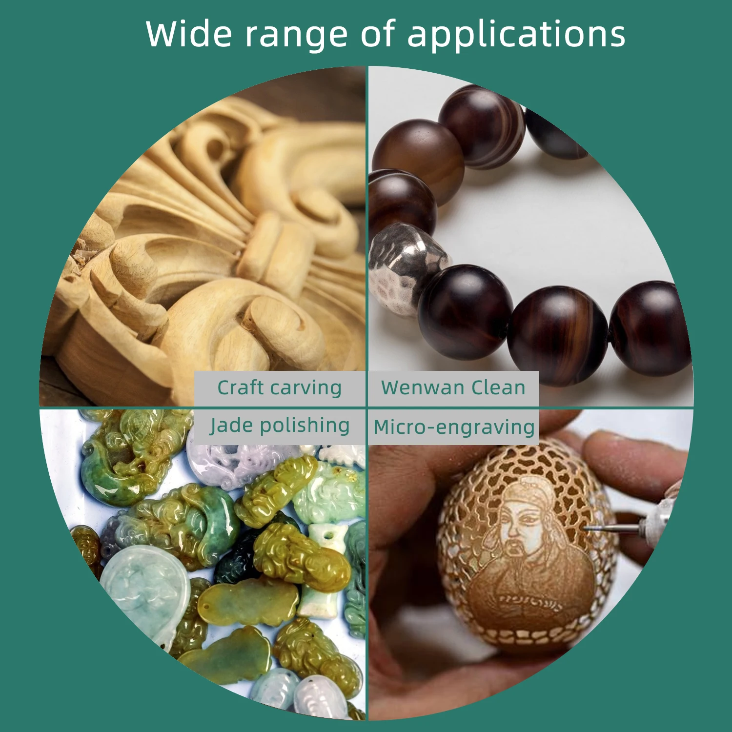 1. Светодиодный рабочий светильник2. Скорость регулирования-этот Электрический инструмент для резьбы имеет 5 регулировок скорости, диапазон регулировки скорости: 3000-15000 об/мин.3. Полные аксессуары-оснащены 24 аксессуарами для бурения, все готово и завершено.4. Идеальная шлифовальная машина-идеальная электрическая шлифовальная машина для резки, гравировки, фрезерования, шлифования, полировки, удаления и сверления. Набор гравировки шлифовальной машины необходим для самостоятельной резьбы и шлифования.5. Подходит для Нефритового агата, ядерной резьбы, резьбы по дереву, шлифовки алюминиевой пластины, тонкой медной доски, пластиковой доски, ДСП, печатной платы, эпоксидной доски.6. Прочный и надежный-небольшого объема, светильник вес, легко взять с собой, удобная рукоятка из биметаллического, лучше контролировать предлагает при бурении, удобно в использовании.Для безопасного использования:1. Когда вы закончите использование устройства, выключите двигатель и убедитесь, что все движущиеся части полностью остановились.2. Прежде чем использовать дополнительные аксессуары, не включенные в этот набор, всегда сравнивайте максимально допустимые RPM этого конкретного аксессуара с RPM этого инструмента.3. В чехол o электрические или механические неисправности, немедленно выключите инструмент.4. Не активируйте переключатель при смене аксессуаров.5. Никогда не используйте замок вала, когда плата работает.6. Убедитесь, что размер цанги соответствует размеру вала аксессуара.7. Храните инструмент в местах, где температура не будет превышать 50 градусов Цельсия.