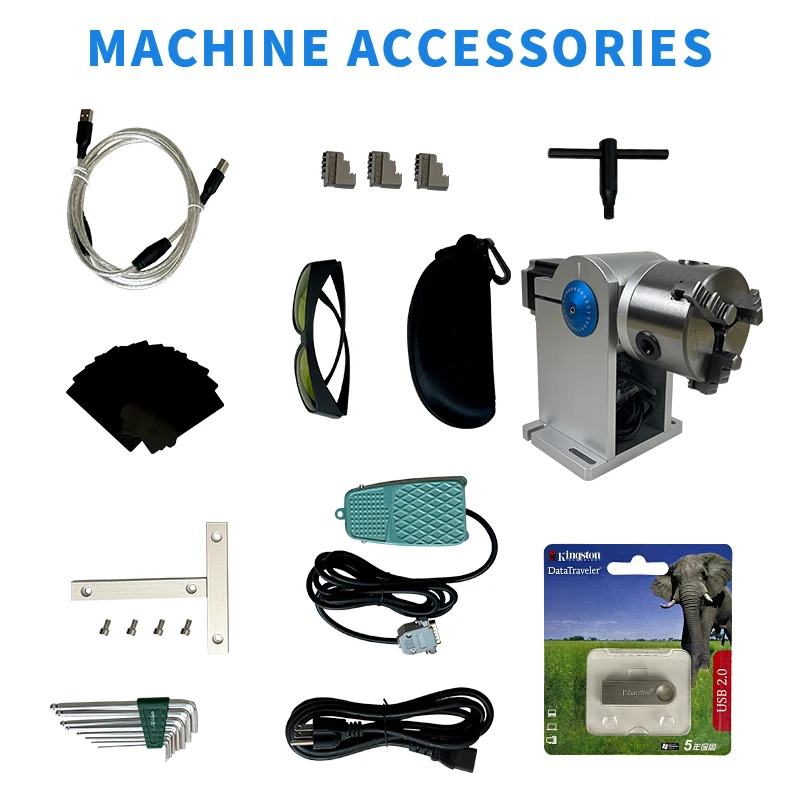 Мы поставляем программное обеспечение с USB для безопасности ваших данных.Запасные части для резервного копирования, такие как кнопка резервного копирования для аварийного использования.Позиционирование стержней для легкого определения правильного положения для ваших гравировальных изделий.