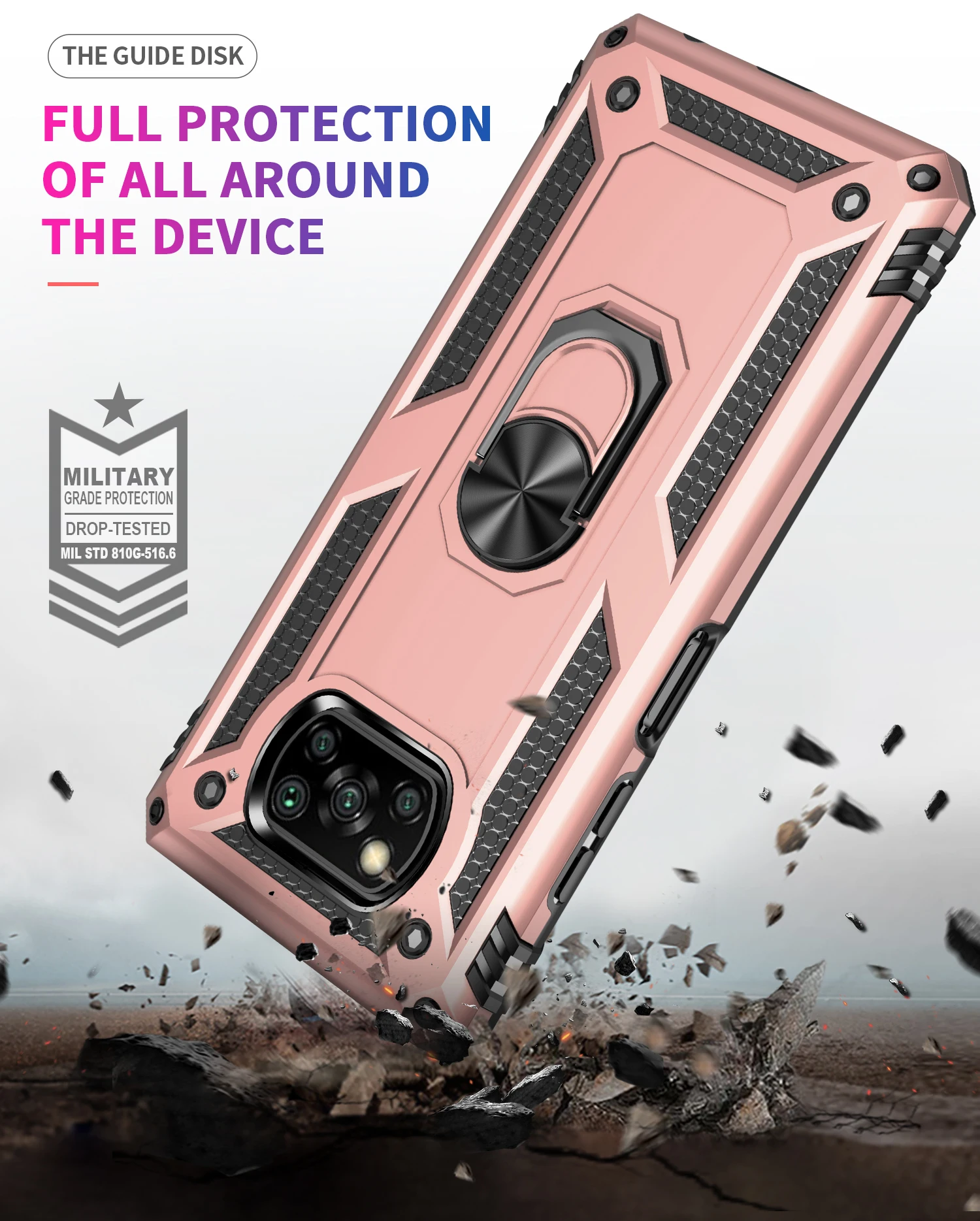 Чехол для телефона Xiaomi Popc X3 Pro Nfc модный бронированный ударопрочный магнитный металлический с кольцом-подставкой защита от падения задняя крышка