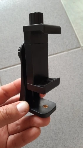 Очень простой и практичный. Оснащен двумя нитями для фиксации, таким образом можно зафиксировать, удерживая мобильный телефон или другую часть можно вращать.