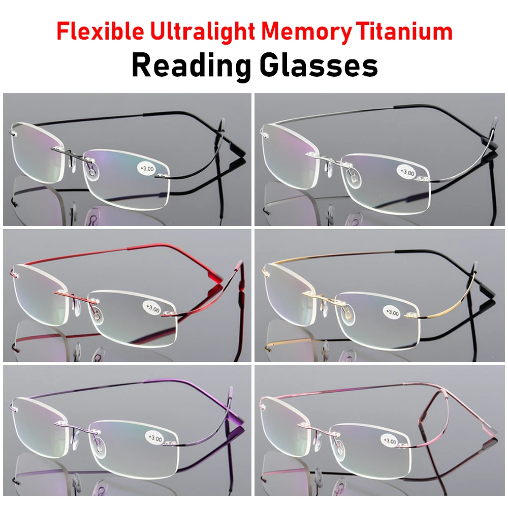 Гибкие Сверхлегкие титановые очки для чтения без оправы с магнитной памятью для мужчин и женщин, мужские очки для дальнозоркости + 1,0 ~ + 4,0