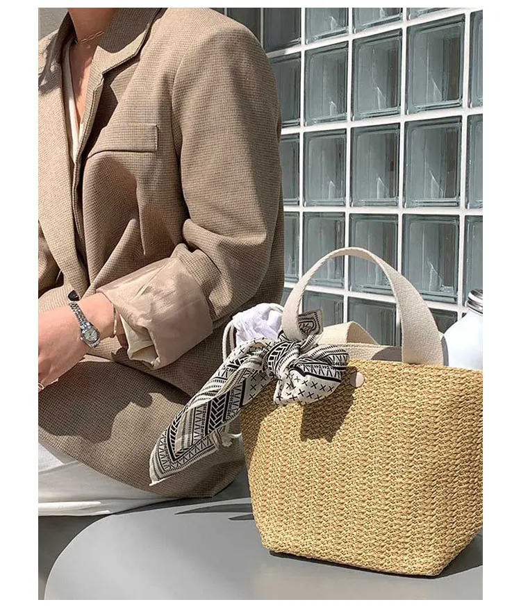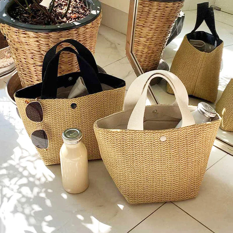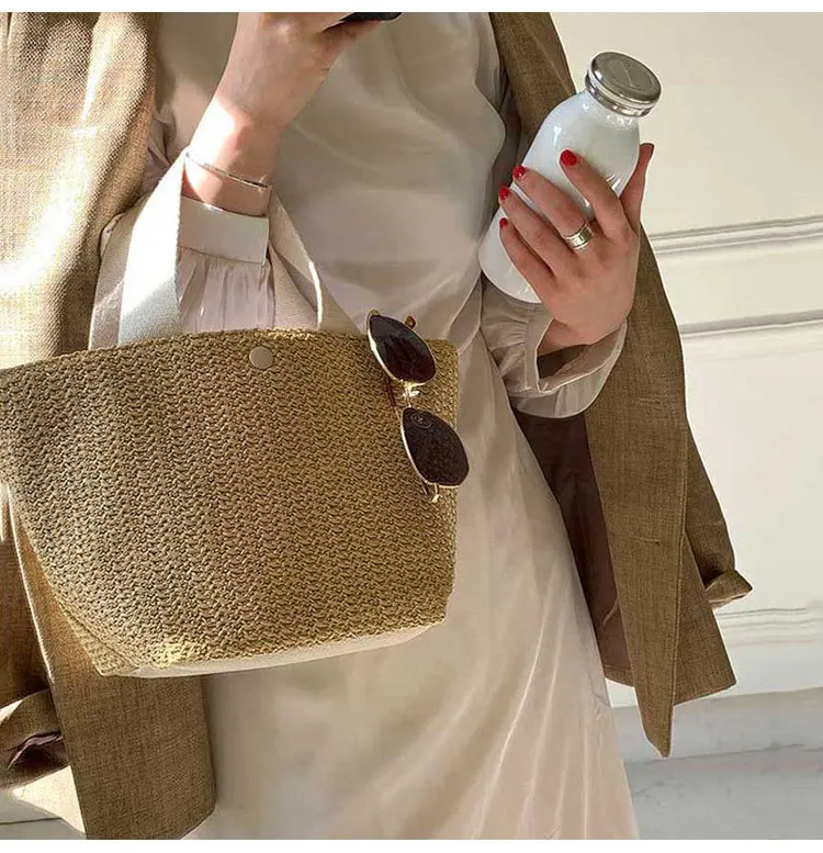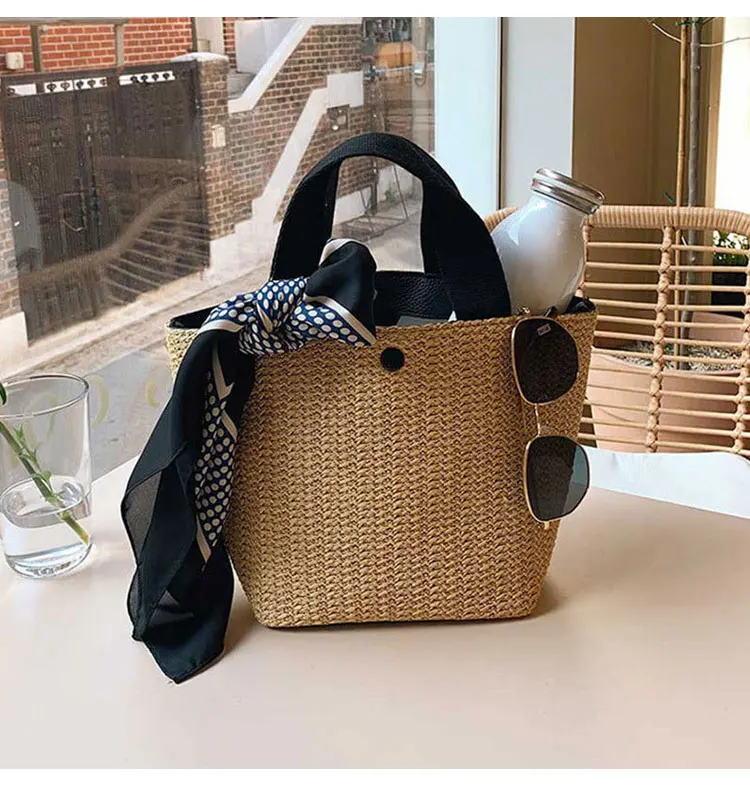 Женские маленькие соломенные сумки-ведра, летние пляжные сумки-тоут...