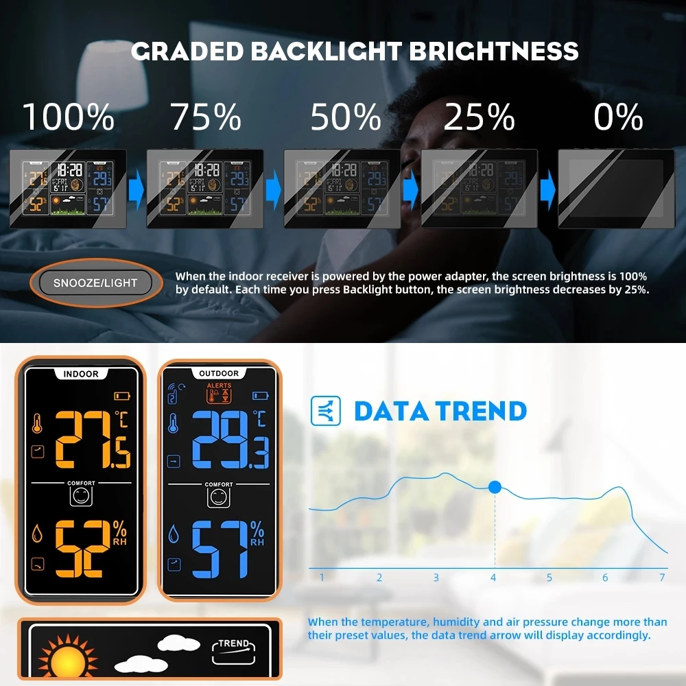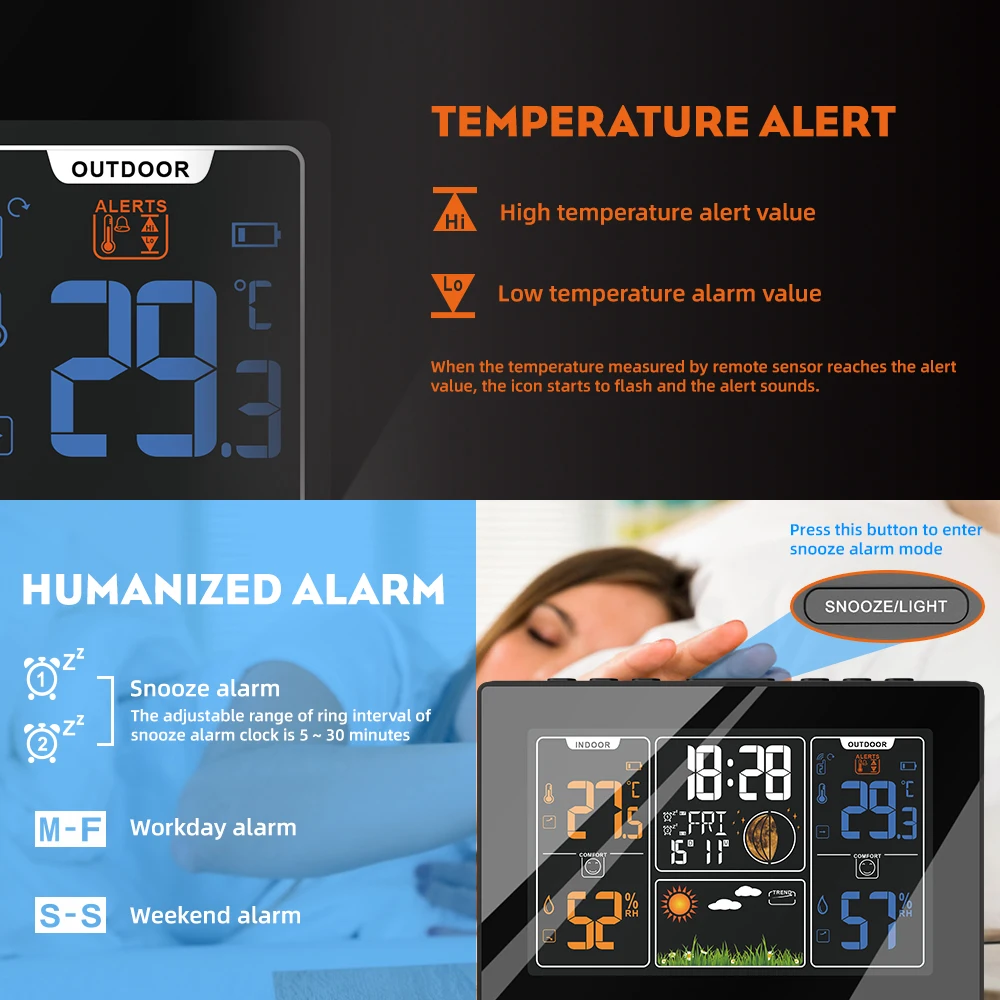 Термогигрометр PT 201C, умная метеостанция с цветным экраном и акриловой панелью, дышащий дизайн с отверстиями