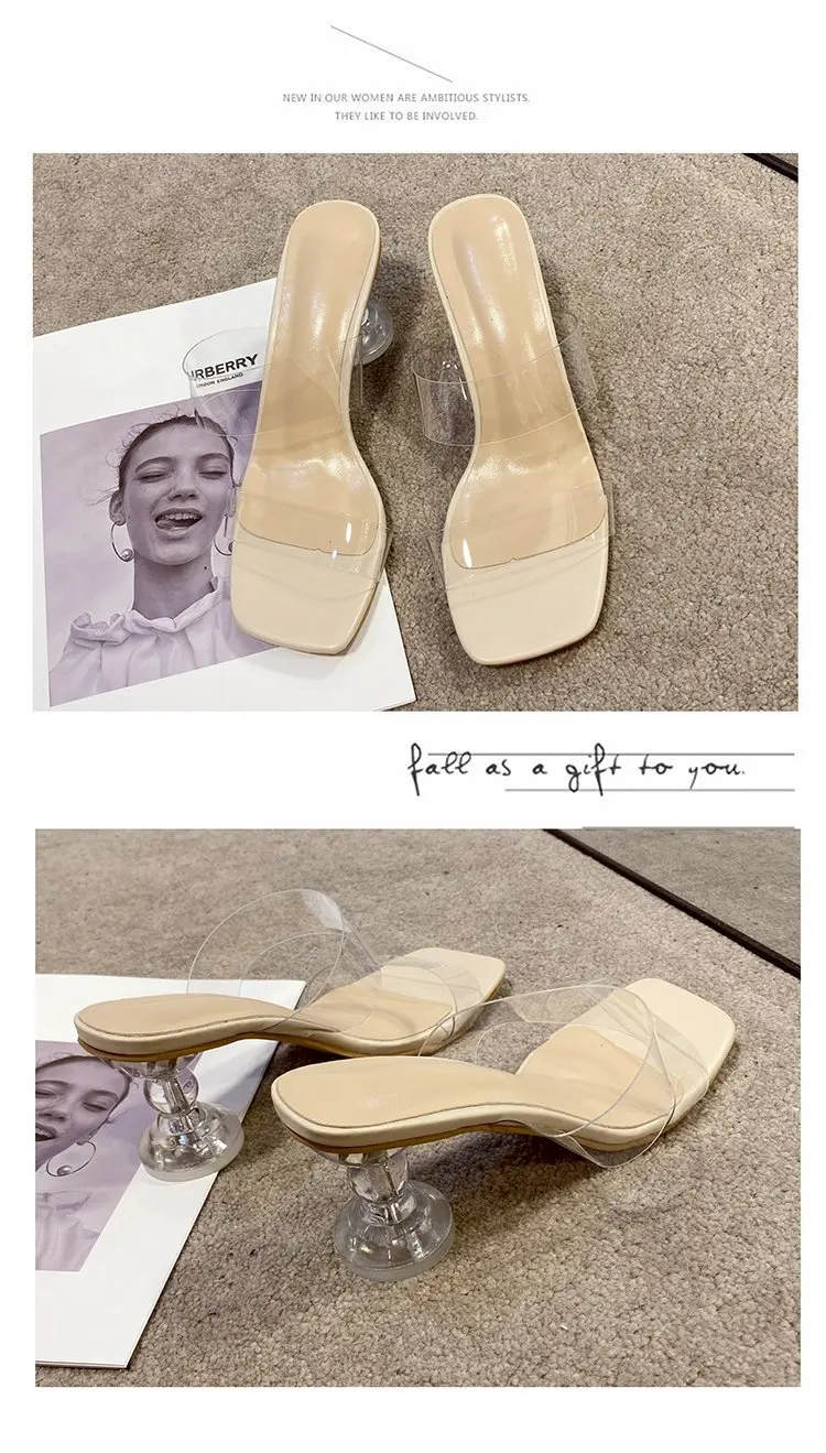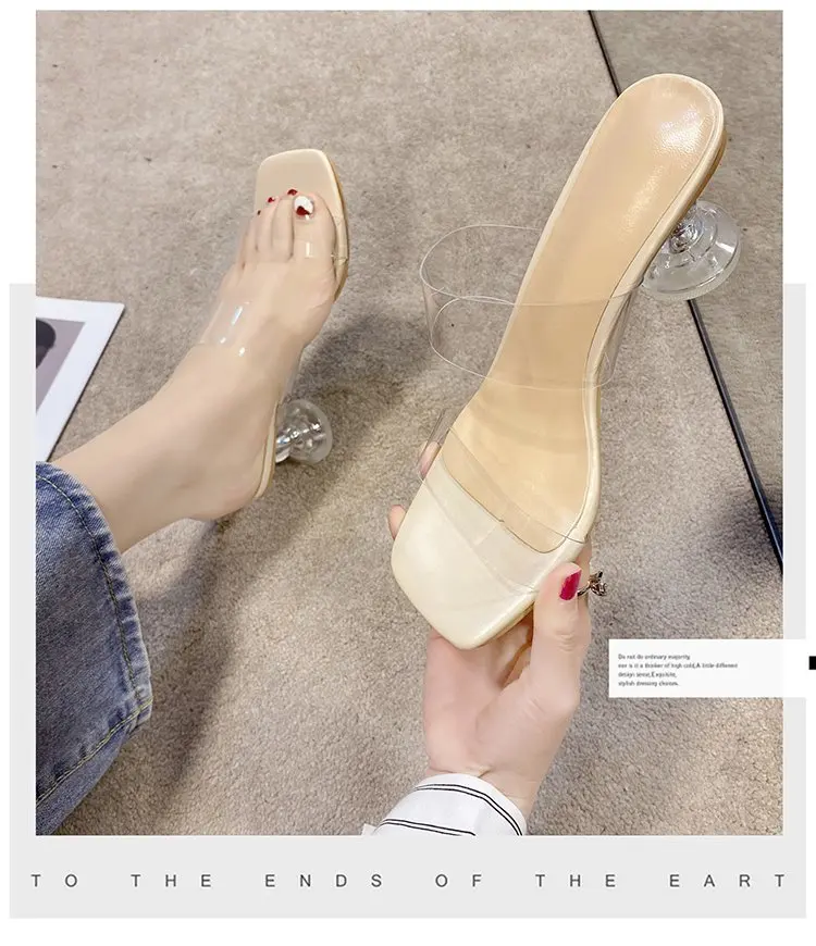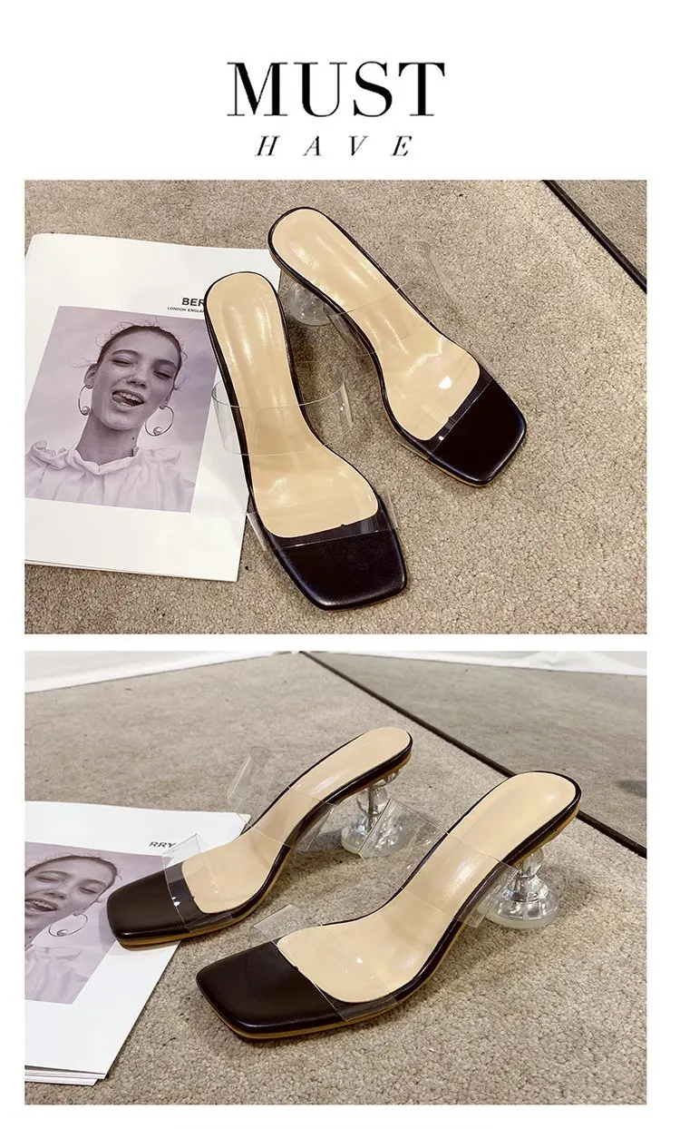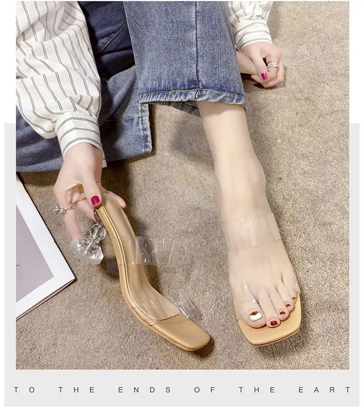 Сандалии на высоком каблуке 7 см, с прозрачным ремешком, из ПВХ