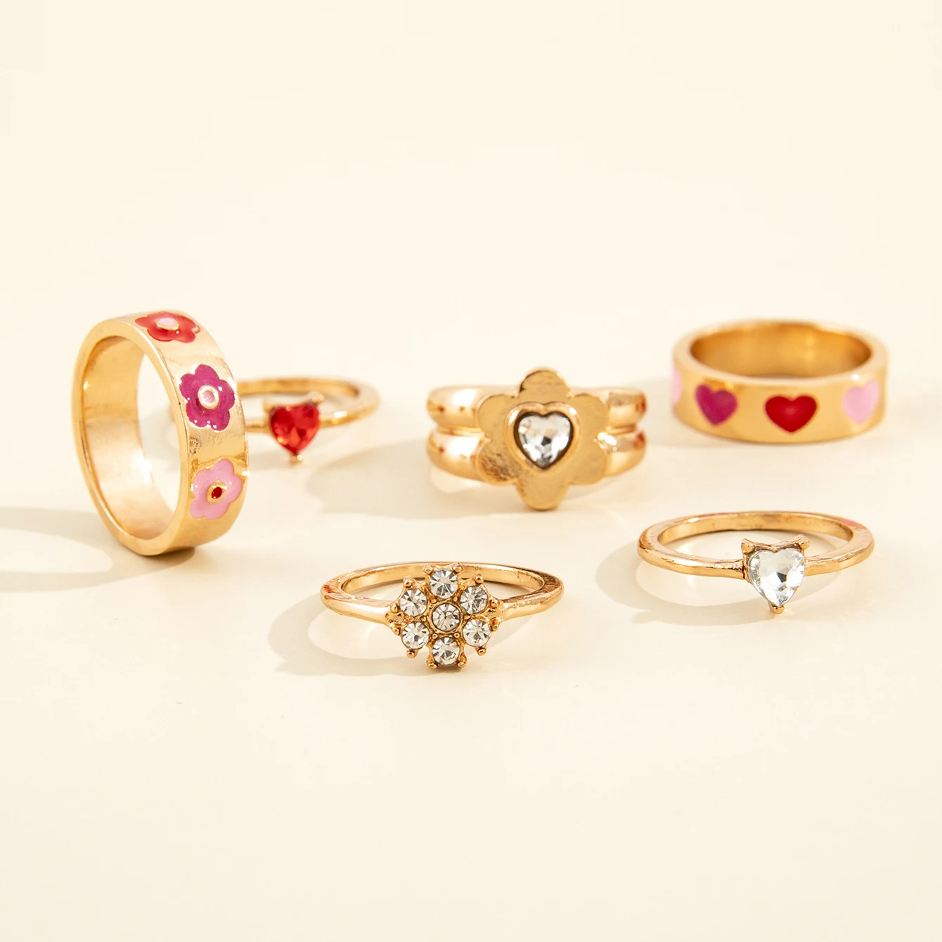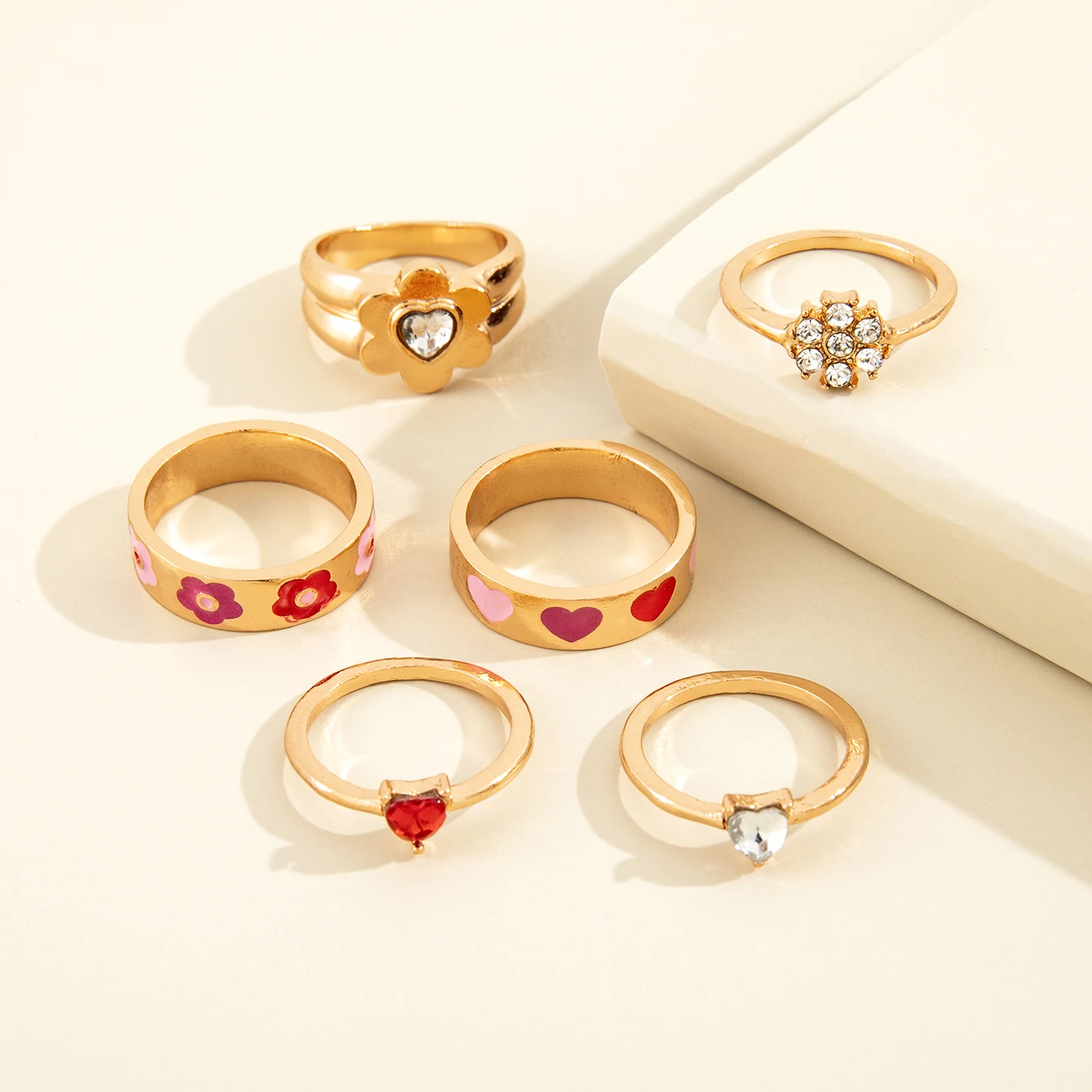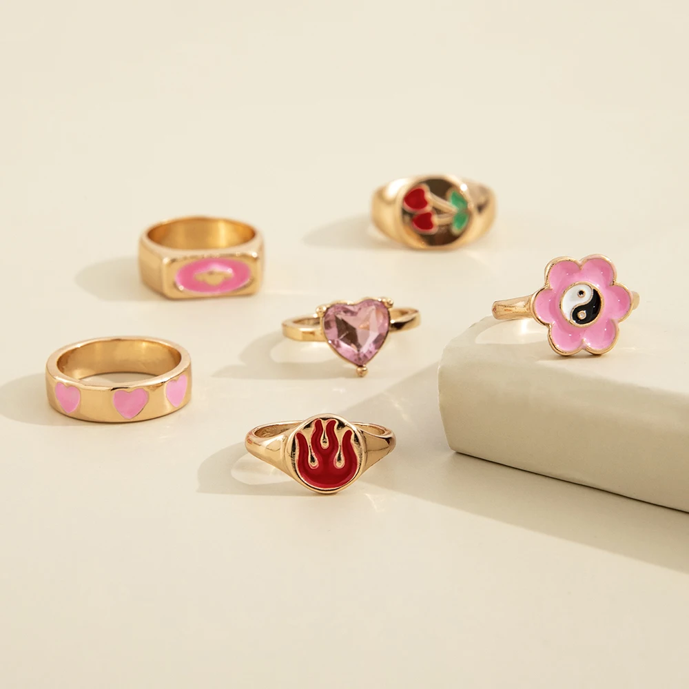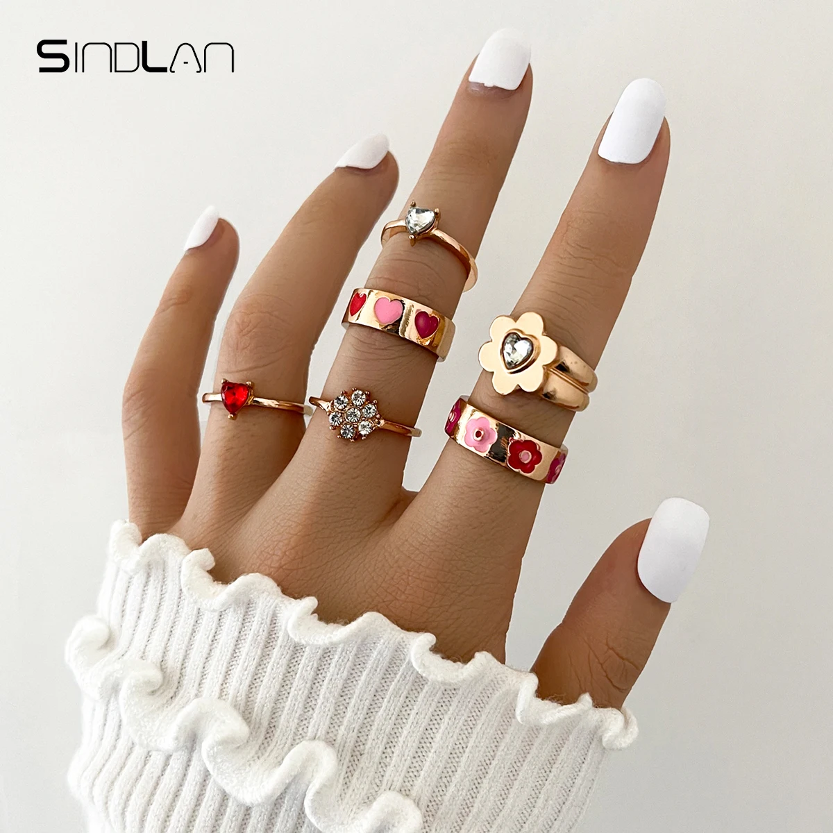 Sindlan Kpop хрустальные золотые кольца в форме сердца для женщин комплект в стиле бохо с милыми цветами и растениями для женщин Y2k милые модные ювелирные изделия бижутерия женские кольца