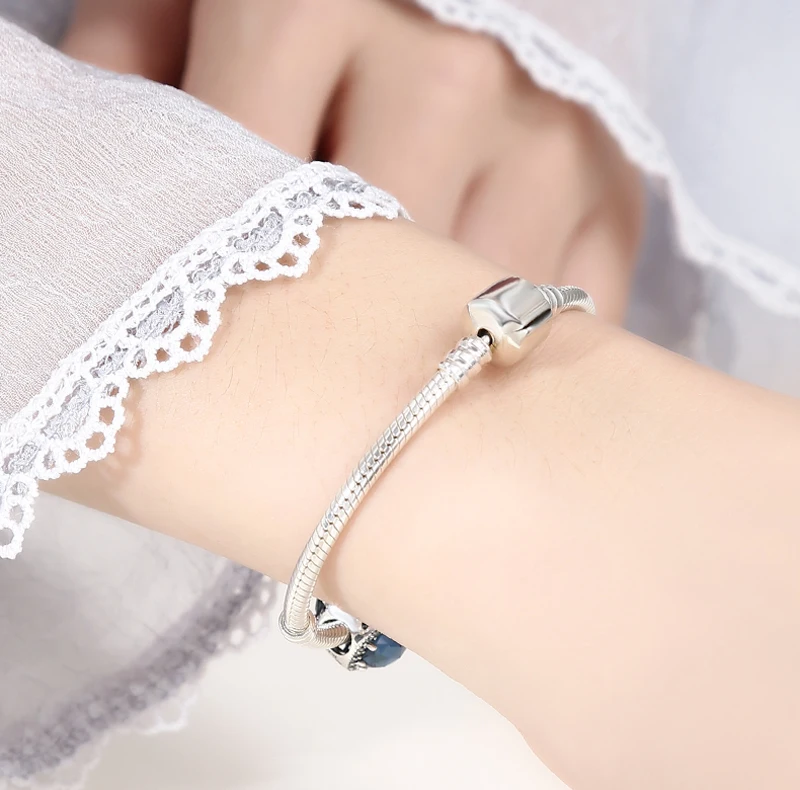 С сертификатом, производство Китай, никогда не увядает реальные 925 чистого серебра базовый цепочка на запястье Сделай Сам бисер подвеска браслет для женщин не вызывающие аллергию украшения