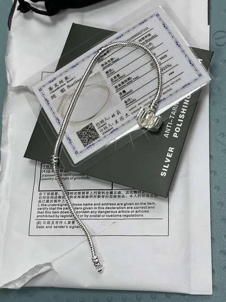 Очень люблю браслеты! Внутри замка есть тест S925, который подтверждает, что он серебряный. Носила около недели, кнопки очень хорошие, браслет очень красивый! Нравится, спасибо! Посылка была доставлена ??в Астрахань за две недели, посылка отслеживалась на всем протяжении.
