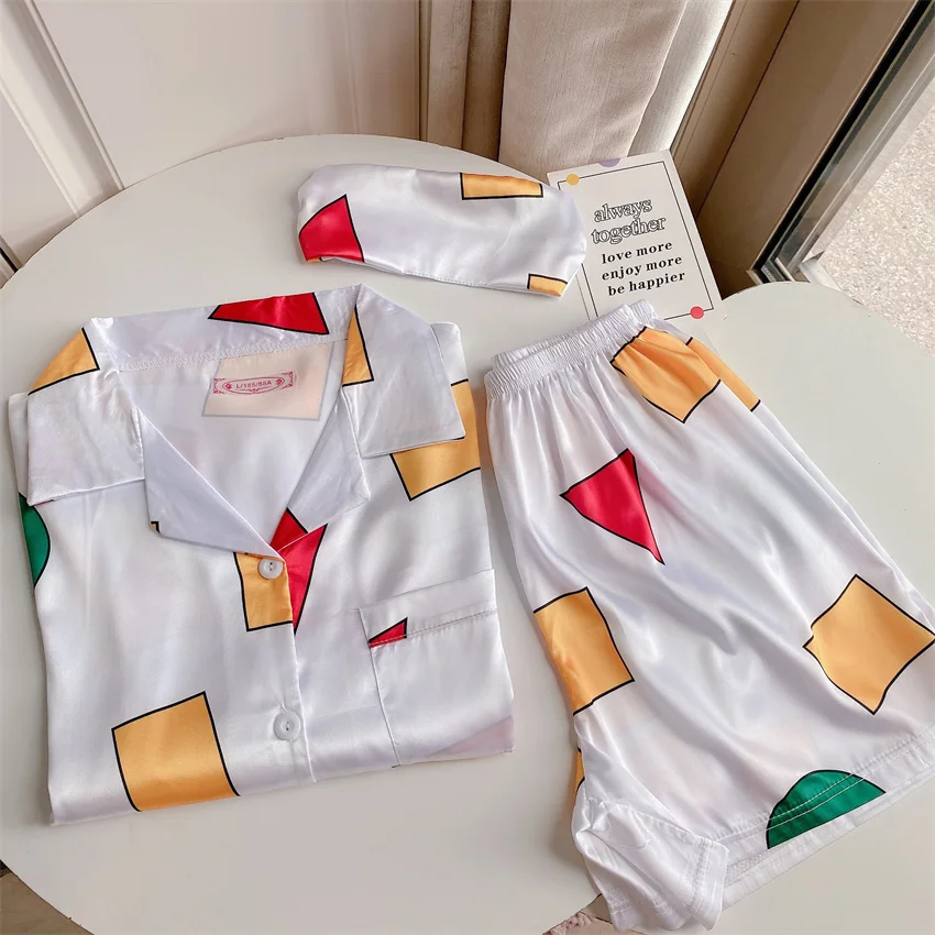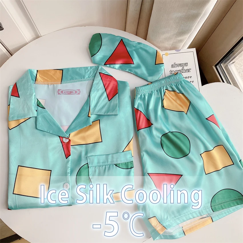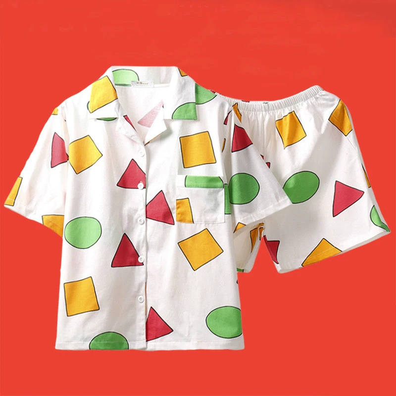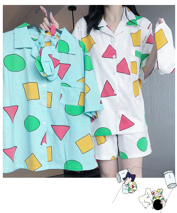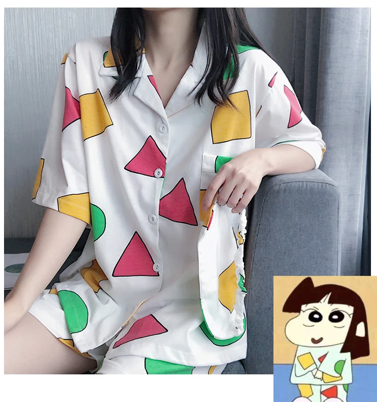 Женский пижамный комплект с коротким рукавом, хлопковое ночное белье из 2 предметов, ночная сорочка с принтом «Shinchan», летняя Домашняя одежда, пижамы для отдыха