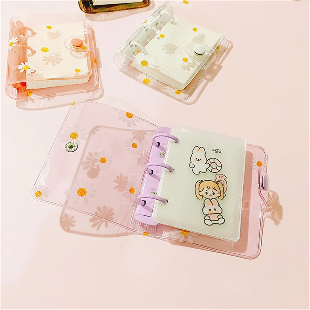 Милый блокнот с маргаритками и свободными листьями, прозрачная папка из ПВХ с 3 отверстиями, корейские канцелярские принадлежности, ручной журнал для девочек, школьные принадлежности