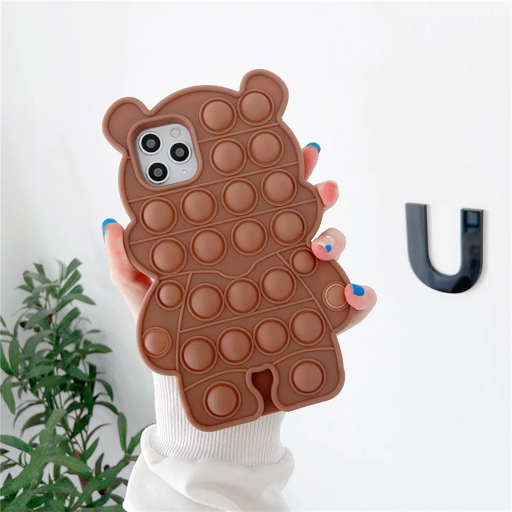 Reliver стресс поп игрушечный кубик для пуш-ап пузырь чехол для iPhone 6, 6s, 7, 8 plus X XR XS 11 12 Pro Max SE кремния чучело медведя Обложка из игры