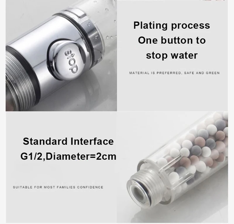 Душевая лейка с кнопкой остановки, насадка для душа с фильтром в ва...