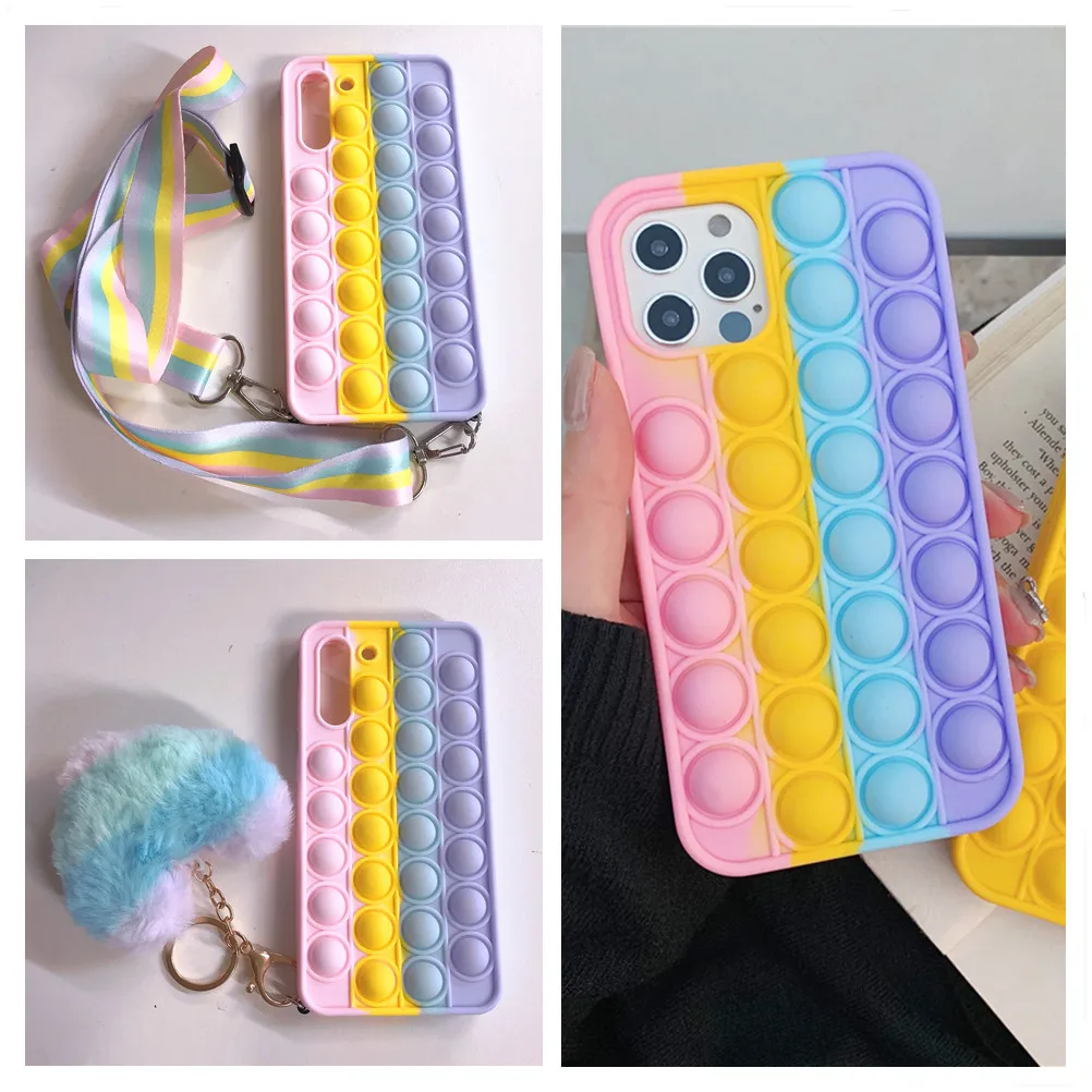Поп-Непоседа игрушки пуш-ап Пузырь Мягкий силиконовый чехол для телефона для iPhone 6s 7 8 6 Plus X XR XS 11 12 Pro Max SE 12 мини радужные крышка
