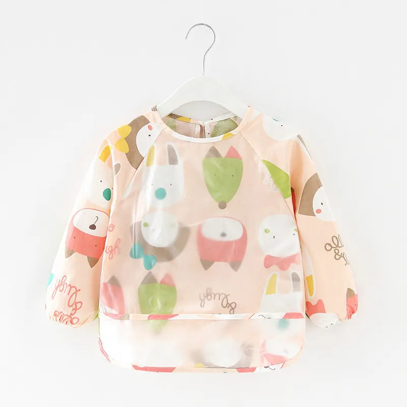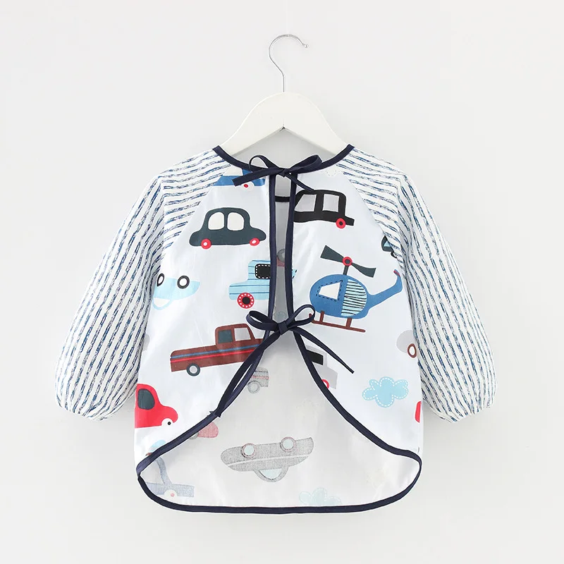 Детский нагрудник с длинным рукавом, водонепроницаемый двусторонний фартук из хлопка, с мультяшным рисунком еды, для кормления новорожденных