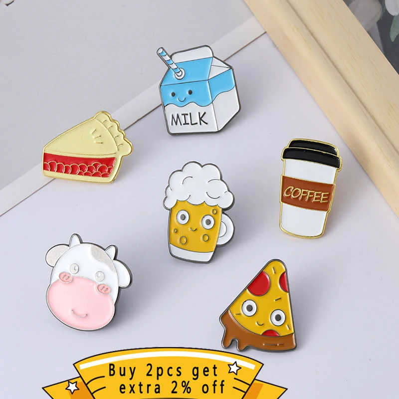 Эмалированные булавки в форме молочного кофе, пива, сэндвичей, пищи, броши для женщин и мужчин, милые коровы, значок на лацкан, ювелирные изделия, подарки, оптовая продажа