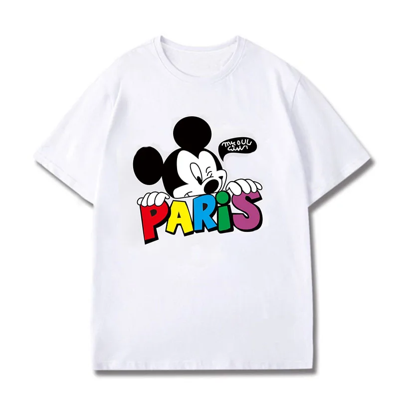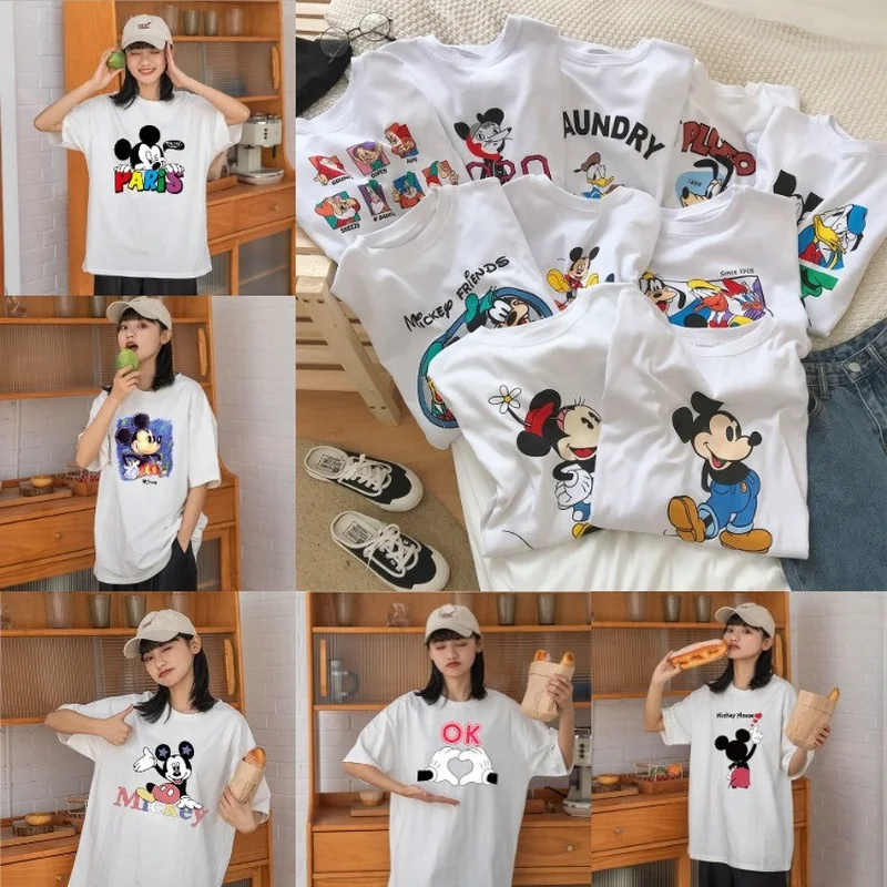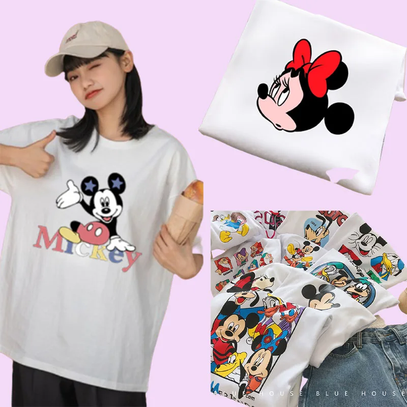 Футболка женская большого размера с короткими рукавами и изображением героев мультфильма Микки и Минни, лето 2021