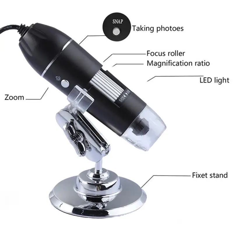 Особенности: 1.1600X Увеличение: 1600x увеличение, четкая детализация. Встросветильник светодиодный Дов. 2. Высококачественный Карманный микроскоп: Удобная и прочная противоскользящая ручка премиум-класса. Этот портативный микроскоп-идеальная игрушка для детей, чтобы исследовать микромир, а также подходит для людей, которые любят наблюдать за насекомыми, кожей, печатной платой и многими интересными предметами. 3. Проверка Scal, проверка текстиля, проверка ювелирных изделий, проверка коллекций/монет, проверка печати, проверка PCB orPCBA и так далее. 4. Микроскоп состоит из высококачественных ИС и электронных компонентов с четким качеством изображения, низким энергопотреблением, высоким разрешением, применяется к мелким объектам большего размера. 5. Фото и видео производство, лучший выбор распознавания мелких объектов. Основные характеристики: 1. Датчик изображения: 0,3 M HD CMOS сенсор 2. Разрешение фото: 640x480 3. Разрешение видеозахвата: 640x480 4. Диапазон фокусировки: ручной фокус от 15 до 44 мм 5. Частота кадров: макс. 30f/s 6. Увеличение: 1600X 7. Формат видео: AVI Другие характеристики: 1. Регулируемое освещение: 8 встросветодиодный светодиодных диодов 2. Формат съемки: JEPG/BMP 3. Интерфейс ПК: USB3.0, USB2.0 и USB1.1 4. Источник питания: порт USB (5 В постоянного тока) 5. Поддержка системы: Win2000/2003/XP/Win7/Win8/Win10/Mac 10,13 и выше 6. Размер: прибл. 11x4,33 см/1,18 x дюйма, размер основания: 7x8 см/x дюйма Посылка входит:( С розничной упаковкой) 1 Микроскоп 1 х металлическая подставка