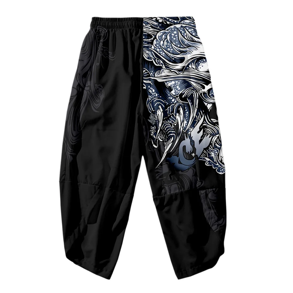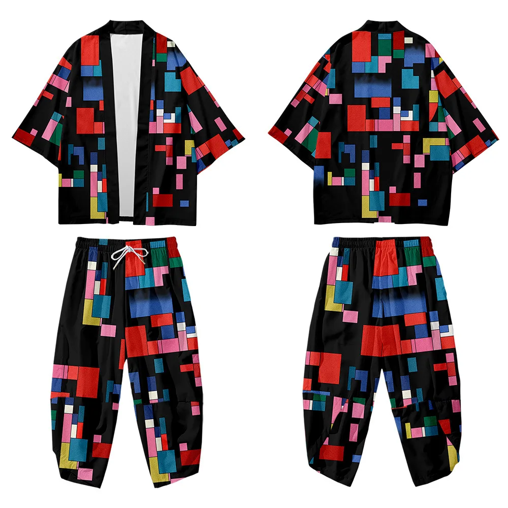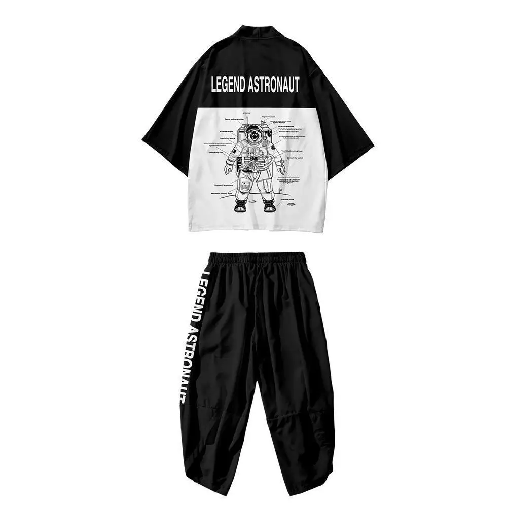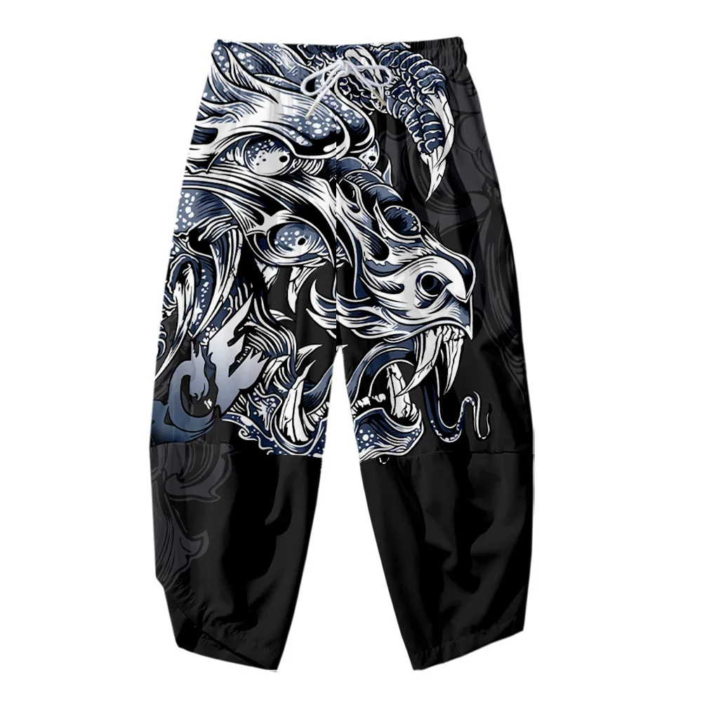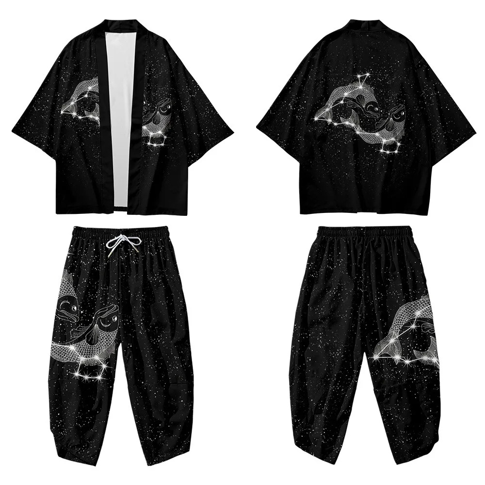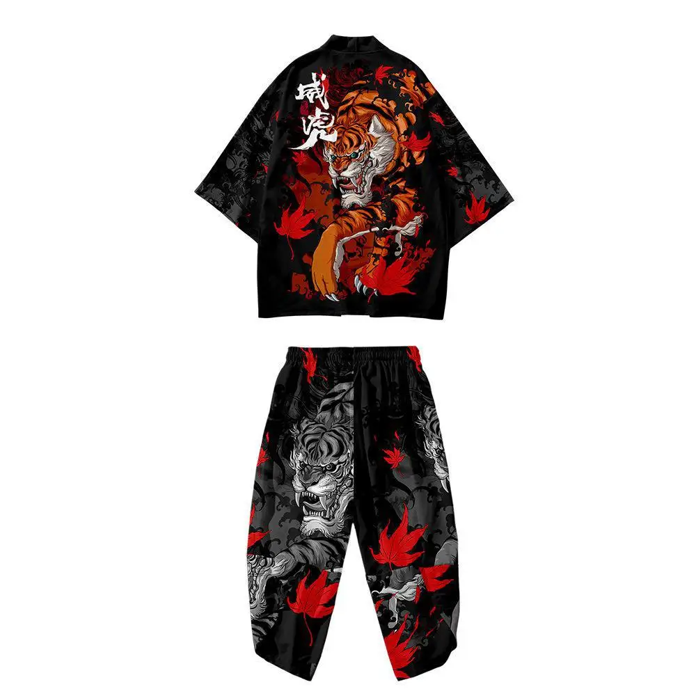 Женский и мужской комплект рубашки с принтом дракона, свободная одежда, комплект из 2 предметов, блузка и брюки кимоно, японские Самурайские костюмы для косплея, повседневный хаори кардиган