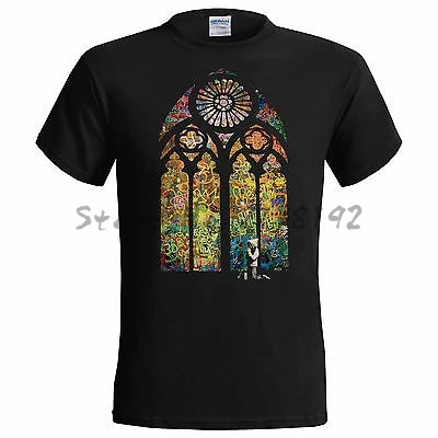Banksy Мужская футболка с витражным стеклом, граффити, искусство, городское искусство, мужские топы, летние хлопковые футболки, брендовые футболки